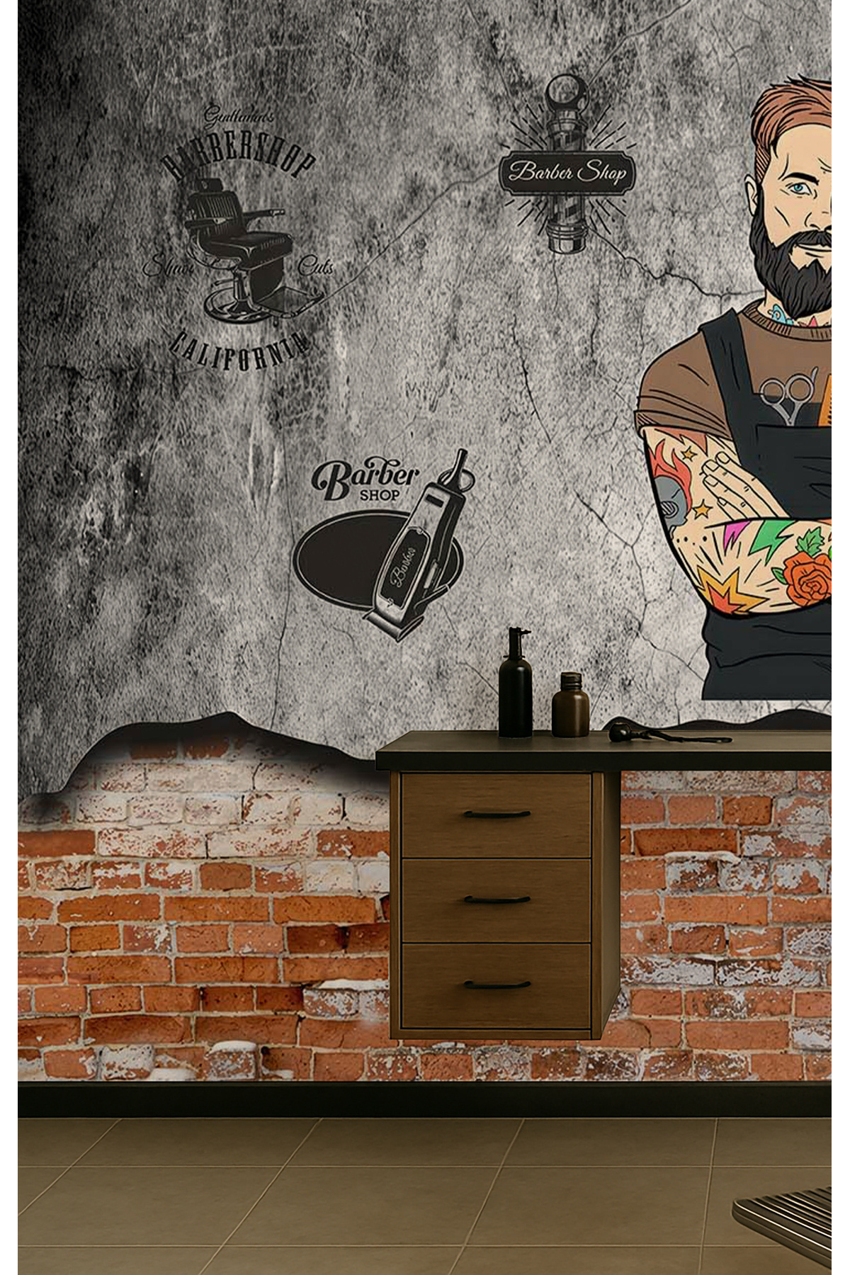 Mavi Tuğla Desenli Neon Berber Dükkanı Duvar Kağıdı Poster Mavi Tuğla Desenli Neon Berber Dükkanı Duvar Kağıdı Poster BF1043-BBR-23680 350 x 240