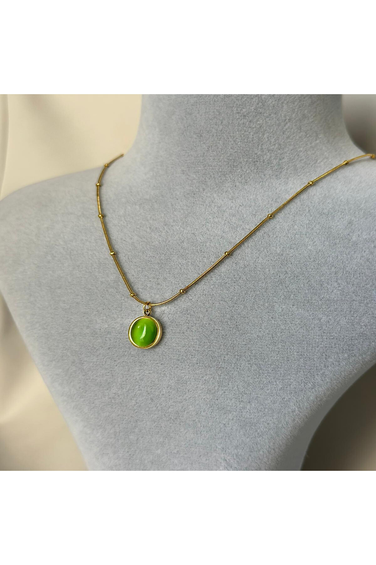 Gold Yeşil Taşlı Kedi Gözü Çelik Kolye Gold Yeşil Taşlı Kedi Gözü Çelik Kolye zncrkolye008 Standart