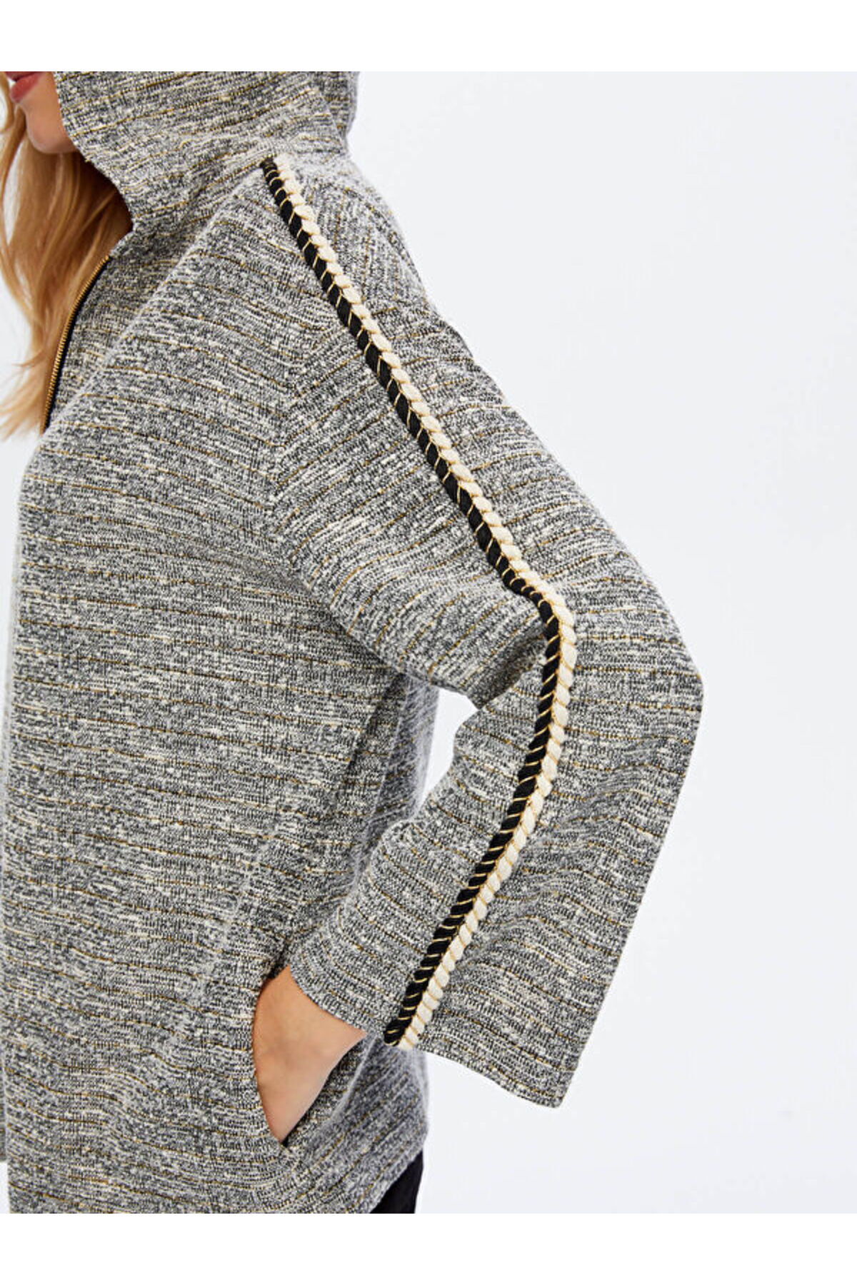 Şerit Detaylı Kapüşonlu Örme Ceket W26CKT028 Şerit Detaylı Kapüşonlu Örme Ceket W26CKT028 UW26CKT028 XL