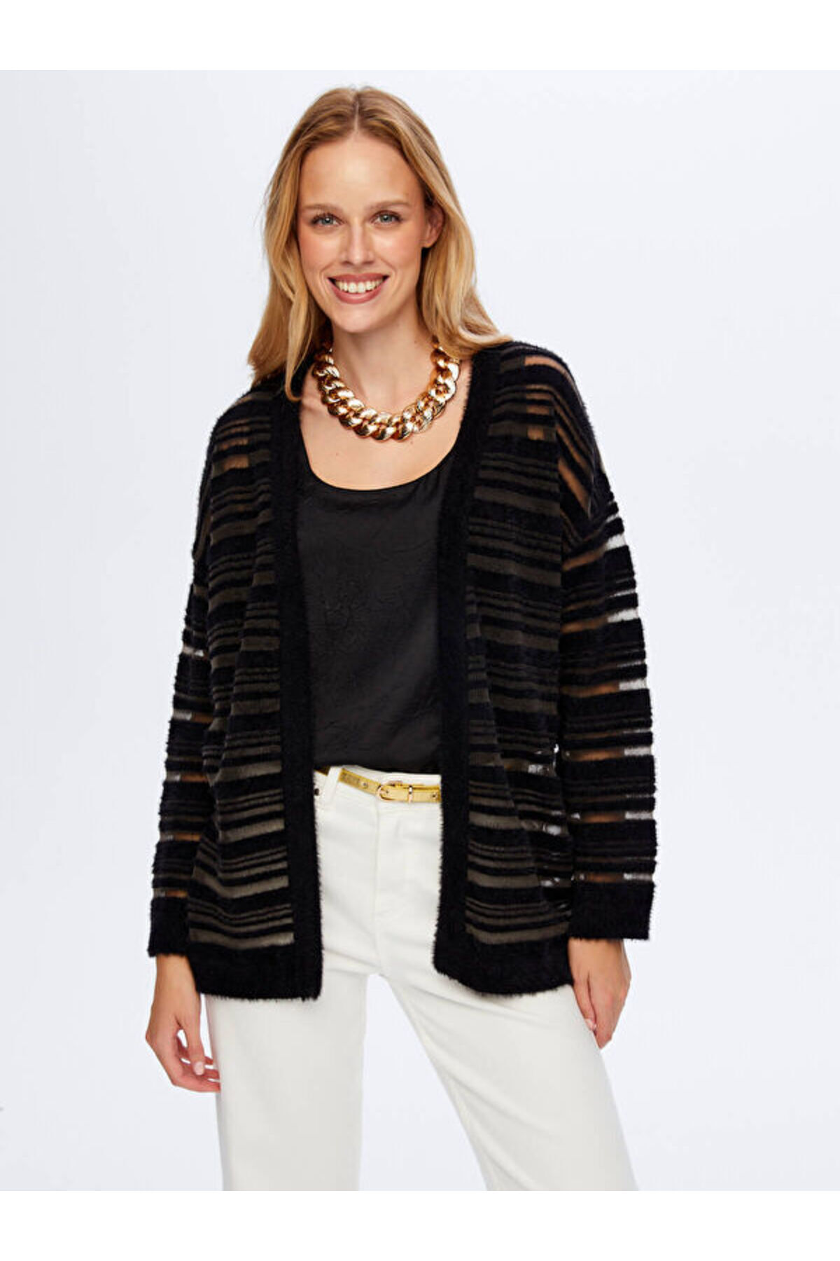 Transparan Detaylı Triko Hırka W26TRH004 Transparan Detaylı Triko Hırka W26TRH004 UW26TRH004 XL
