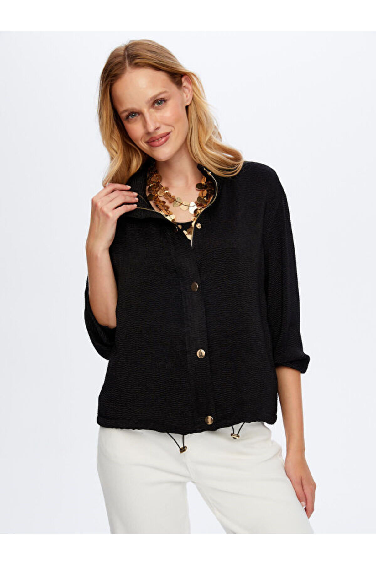 Gold Çıtçıt Detaylı Kendinden Dokulu Saten Bomber Ceket W26BMB002 Gold Çıtçıt Detaylı Kendinden Dokulu Saten Bomber Ceket W26BMB002 UW26BMB002 XL