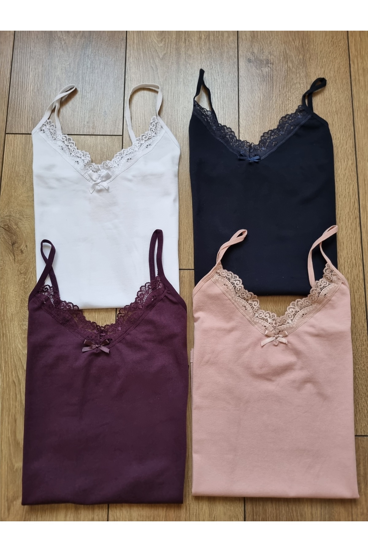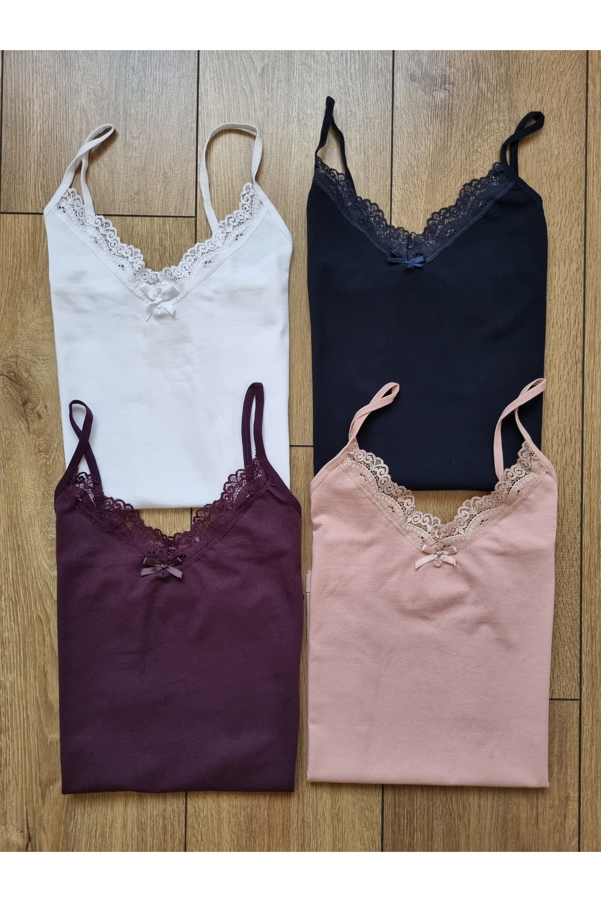 Dantelli Pamuklu İp Askılı Kadın Atlet 4'lü Paket Lacivert, Beyaz, Pudra, Mor Dantelli Pamuklu İp Askılı Kadın Atlet 4'lü Paket Lacivert, Beyaz, Pudra, Mor D-1137 XL