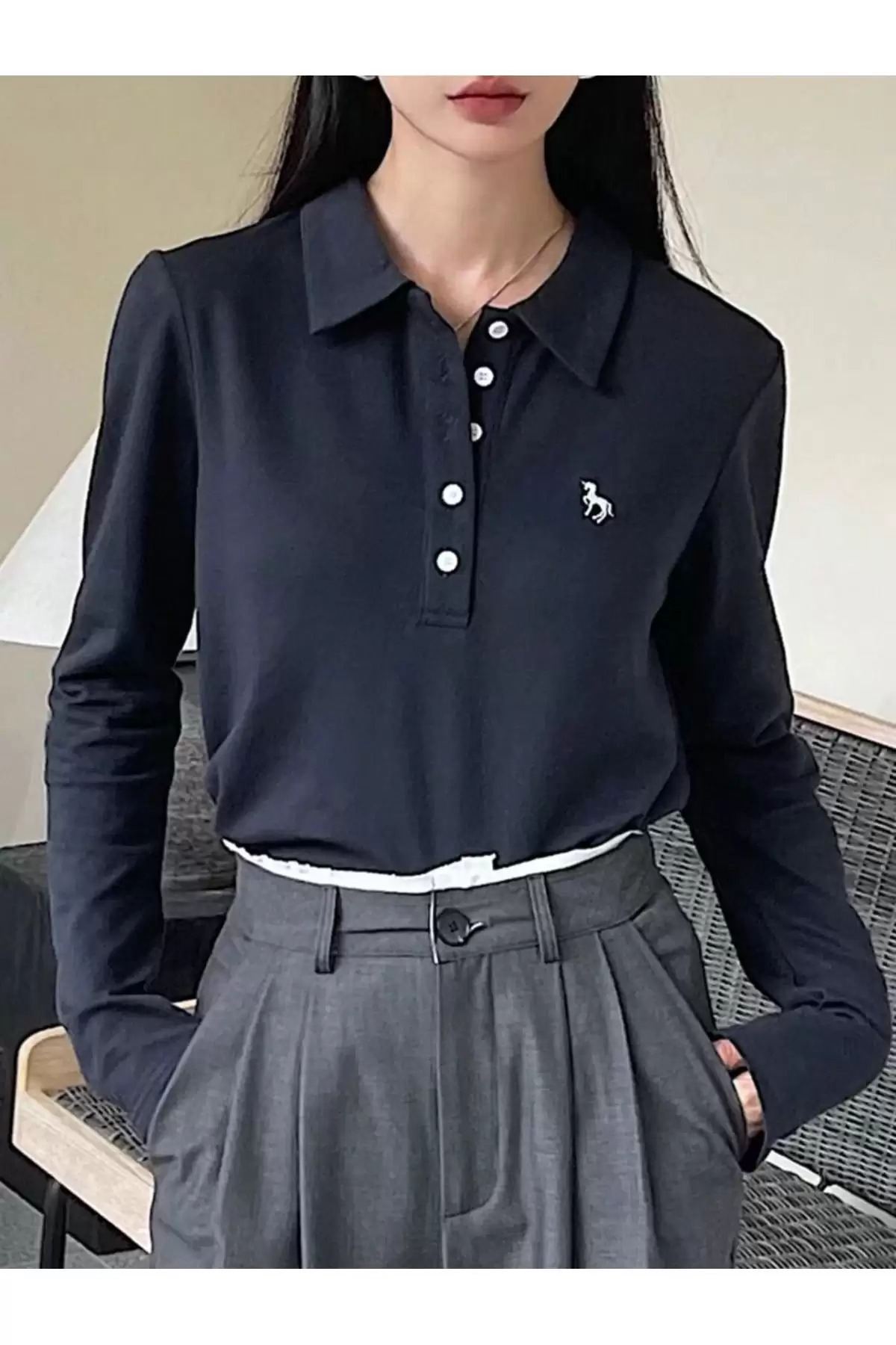 Kahverengi Nakışlı Polo Yaka Uzun Kol T-shirt Kahverengi Nakışlı Polo Yaka Uzun Kol T-shirt Uznkpoefx1 XL