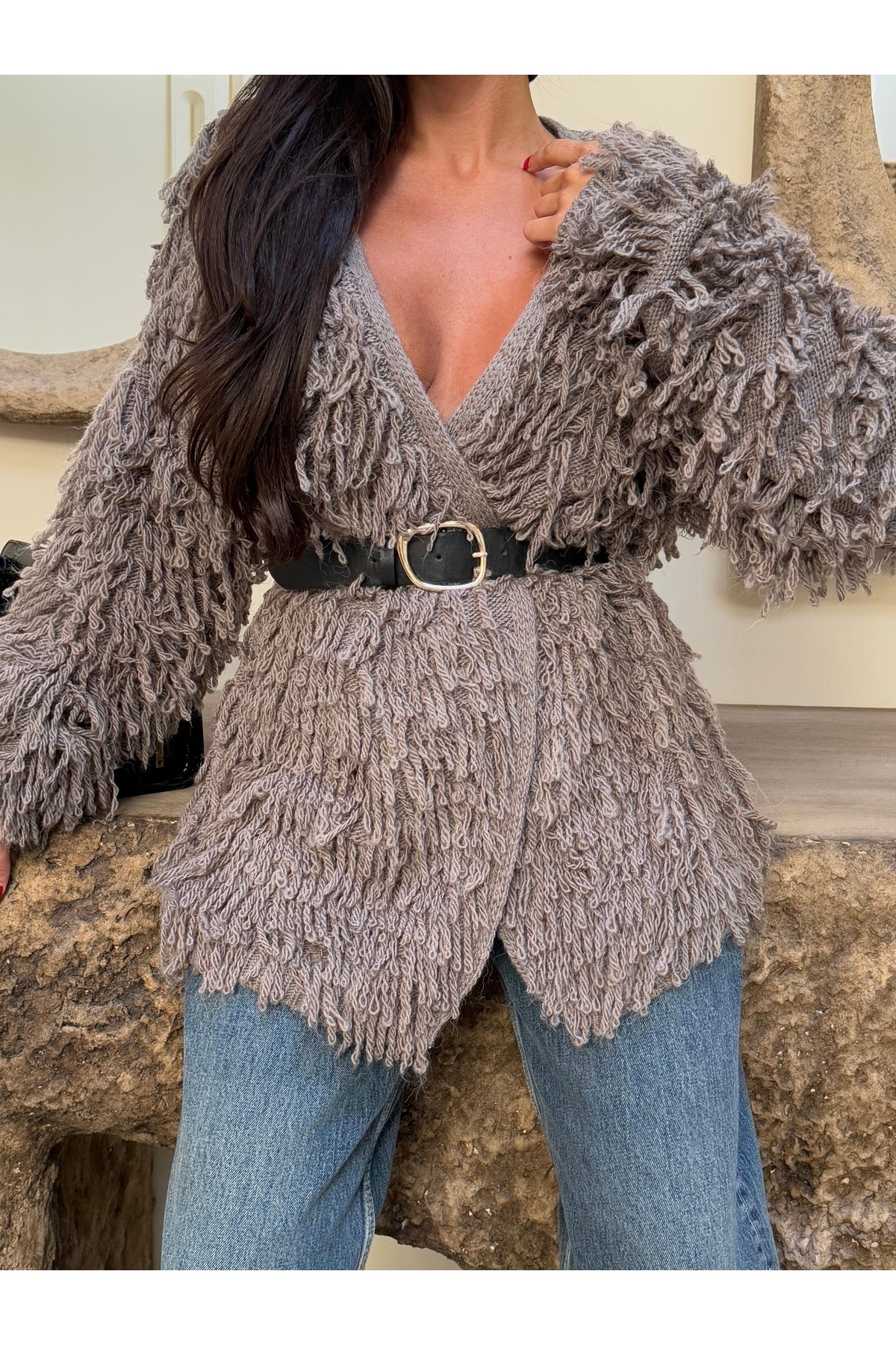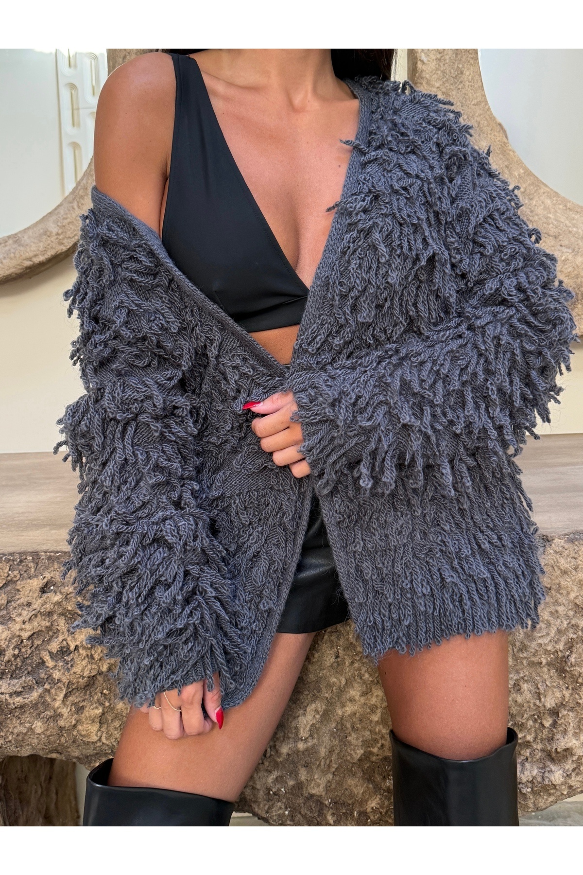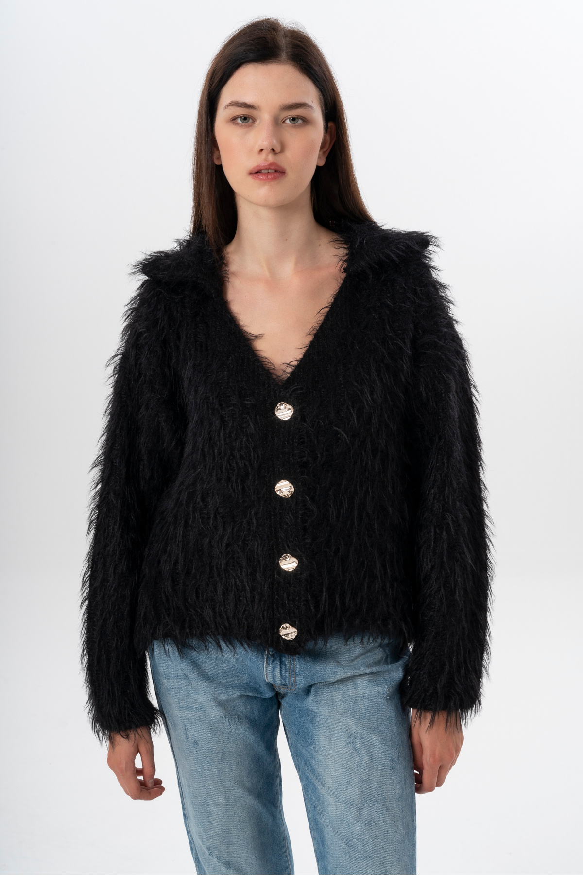 Devrik Yaka Düğmeli Sakal Detaylı Triko Hırka Devrik Yaka Düğmeli Sakal Detaylı Triko Hırka 575754757110FREJYA Standart