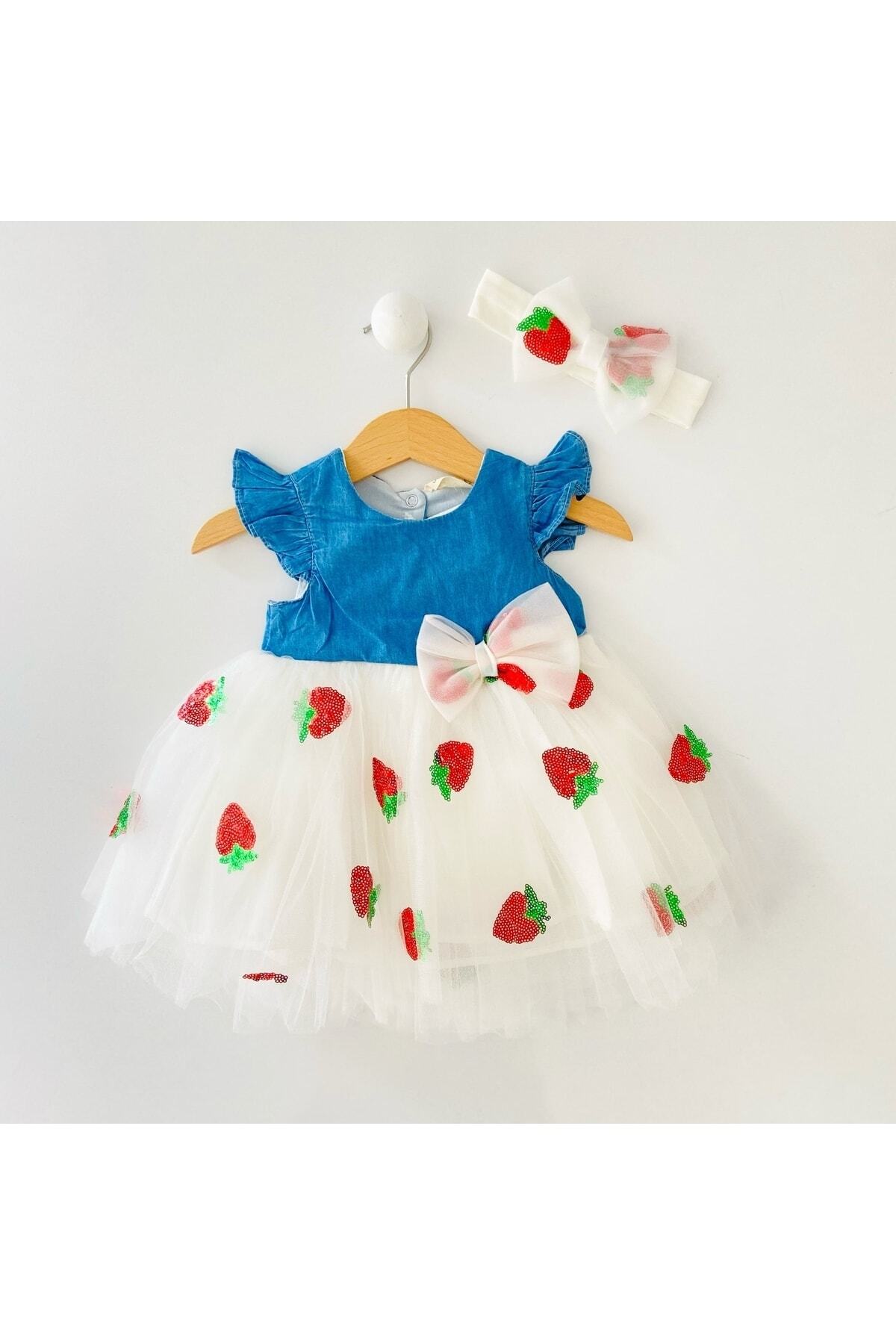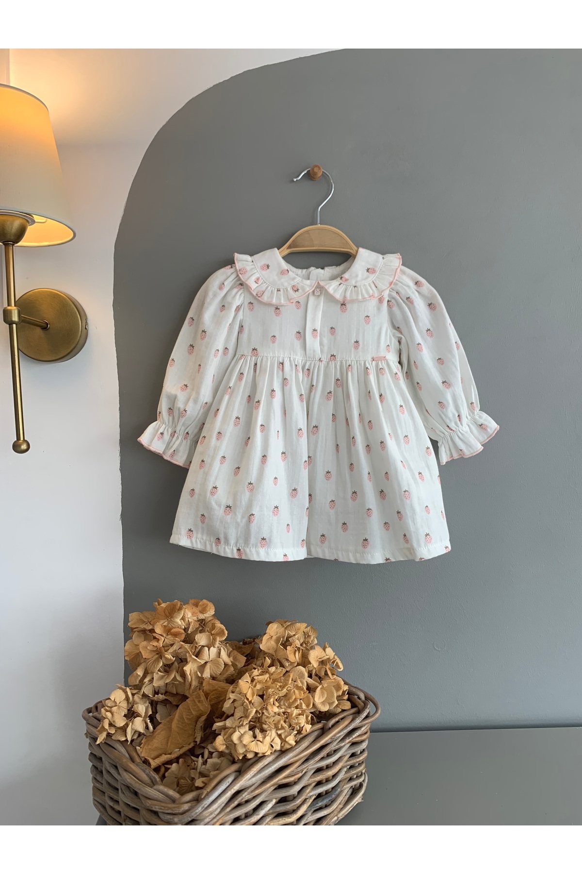 kız bebek pembe pötikare ve çilek desenli yazlık elbise kız bebek pembe pötikare ve çilek desenli yazlık elbise rn2 12-18 AY