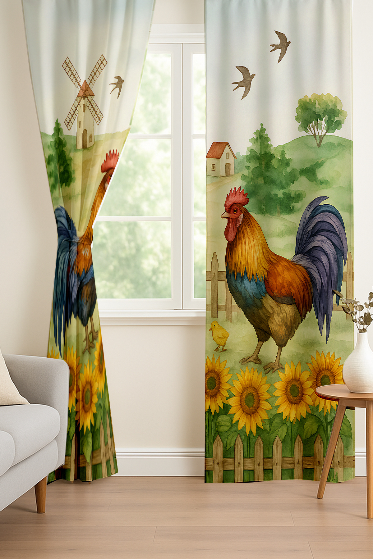 Horoz Çiftlik Desenli Çift Kanatlı Fon Perde Süet Oturma Odası Salon Mutfak 140x260cm Horoz Çiftlik Desenli Çift Kanatlı Fon Perde Süet Oturma Odası Salon Mutfak 140x260cm 3delsehlmtfk 140 x 260