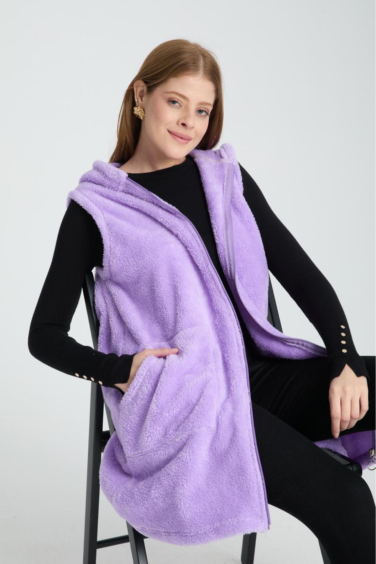 Kadın Lila Fermuarlı Polar Yelek Kadın Lila Fermuarlı Polar Yelek MVSLTLLYK 5XL