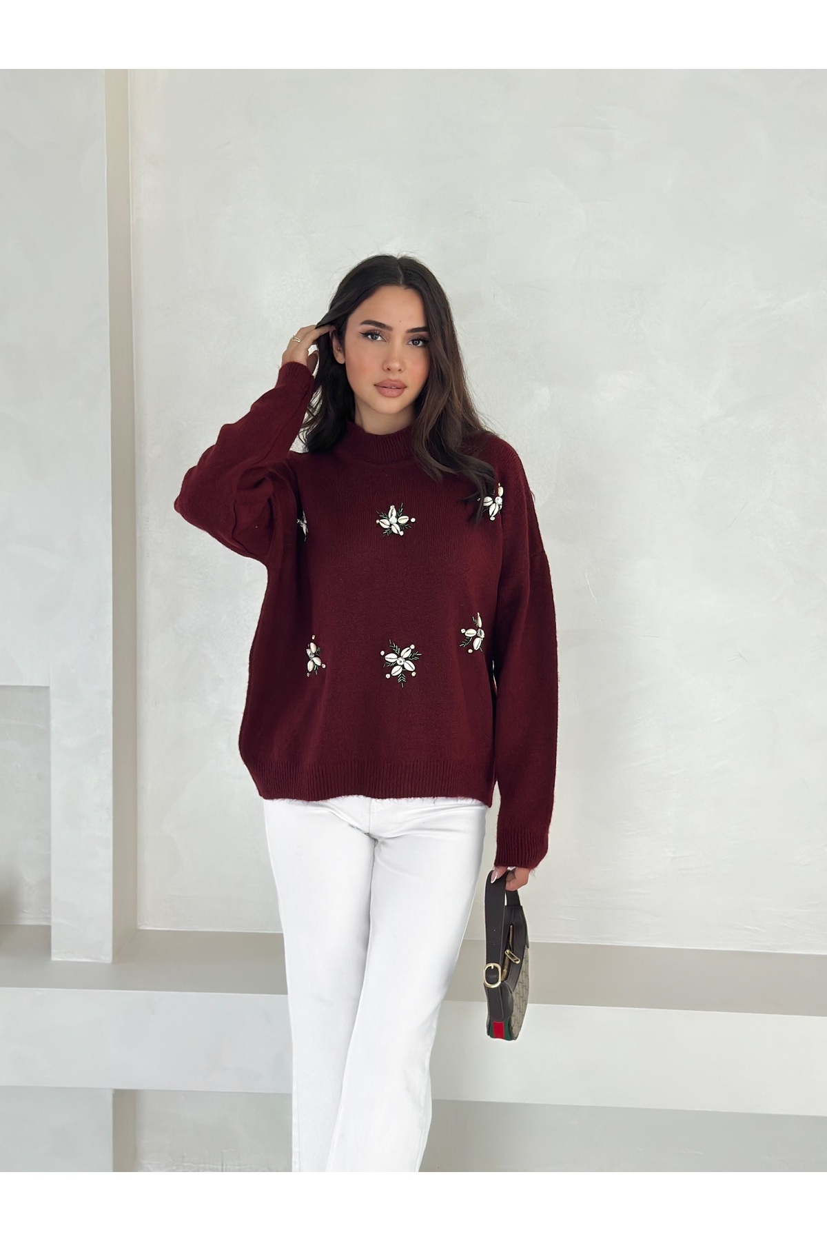 Çiçek Desenli Balıkçı Yaka Triko Kazak Çiçek Desenli Balıkçı Yaka Triko Kazak 75741458554458FREJYA Standart