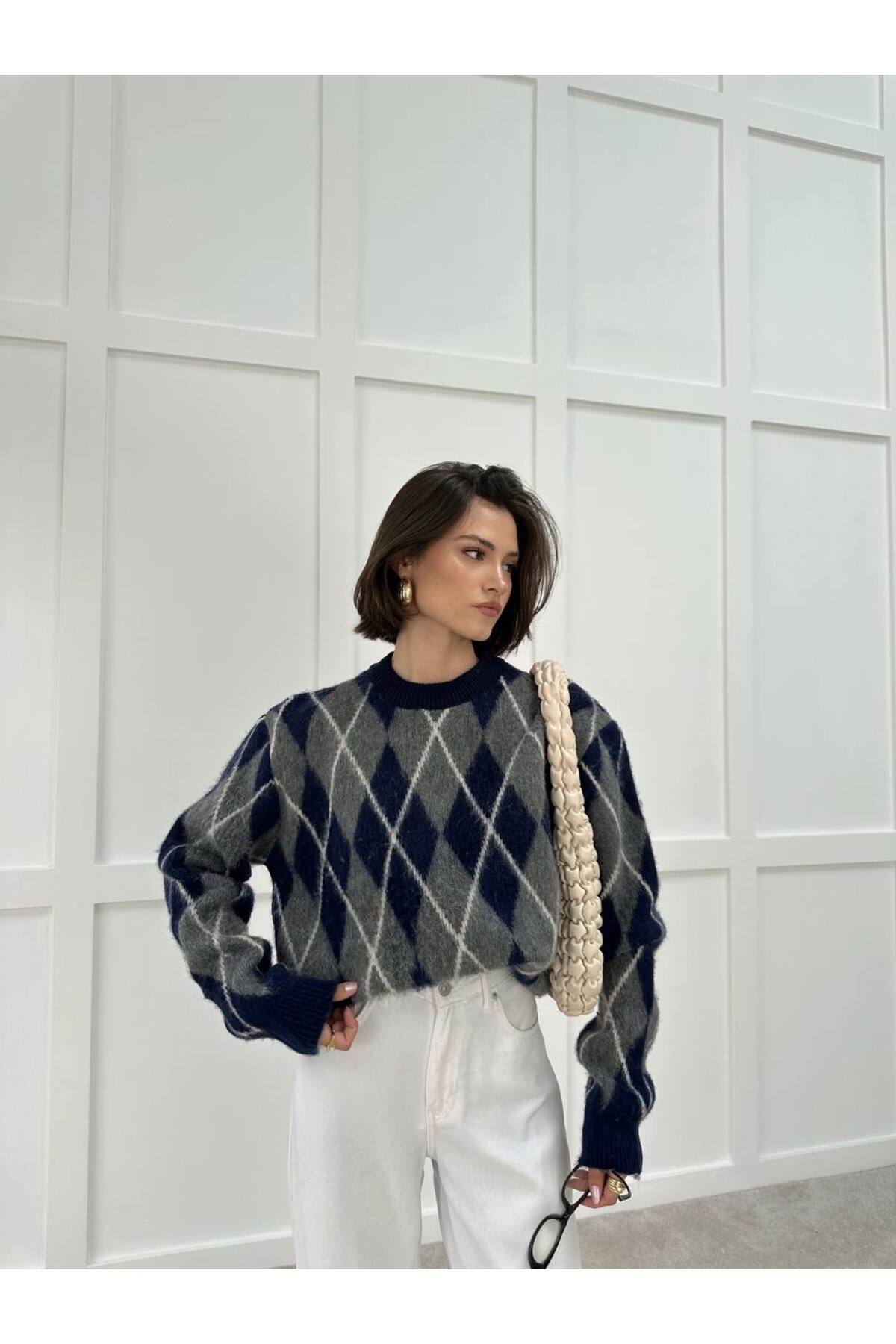 BAKLAVA DESENLİ ŞARDONLU TRİKO KAZAK BAKLAVA DESENLİ ŞARDONLU TRİKO KAZAK FR5233 Standart