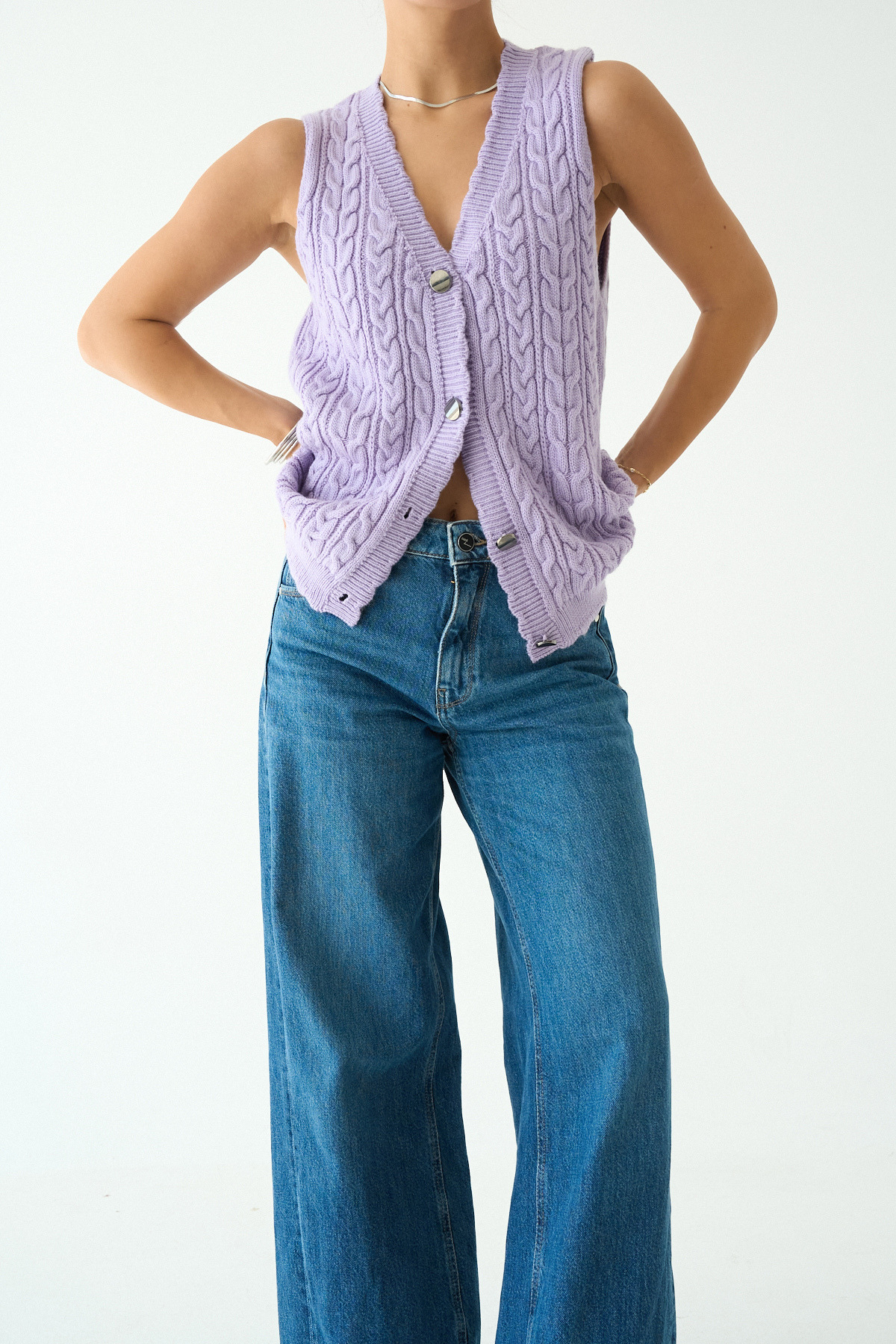 Kadın Lila V Yaka Saç Örgü Desenli Triko Hırka Yelek Kadın Lila V Yaka Saç Örgü Desenli Triko Hırka Yelek TY251004 Standart