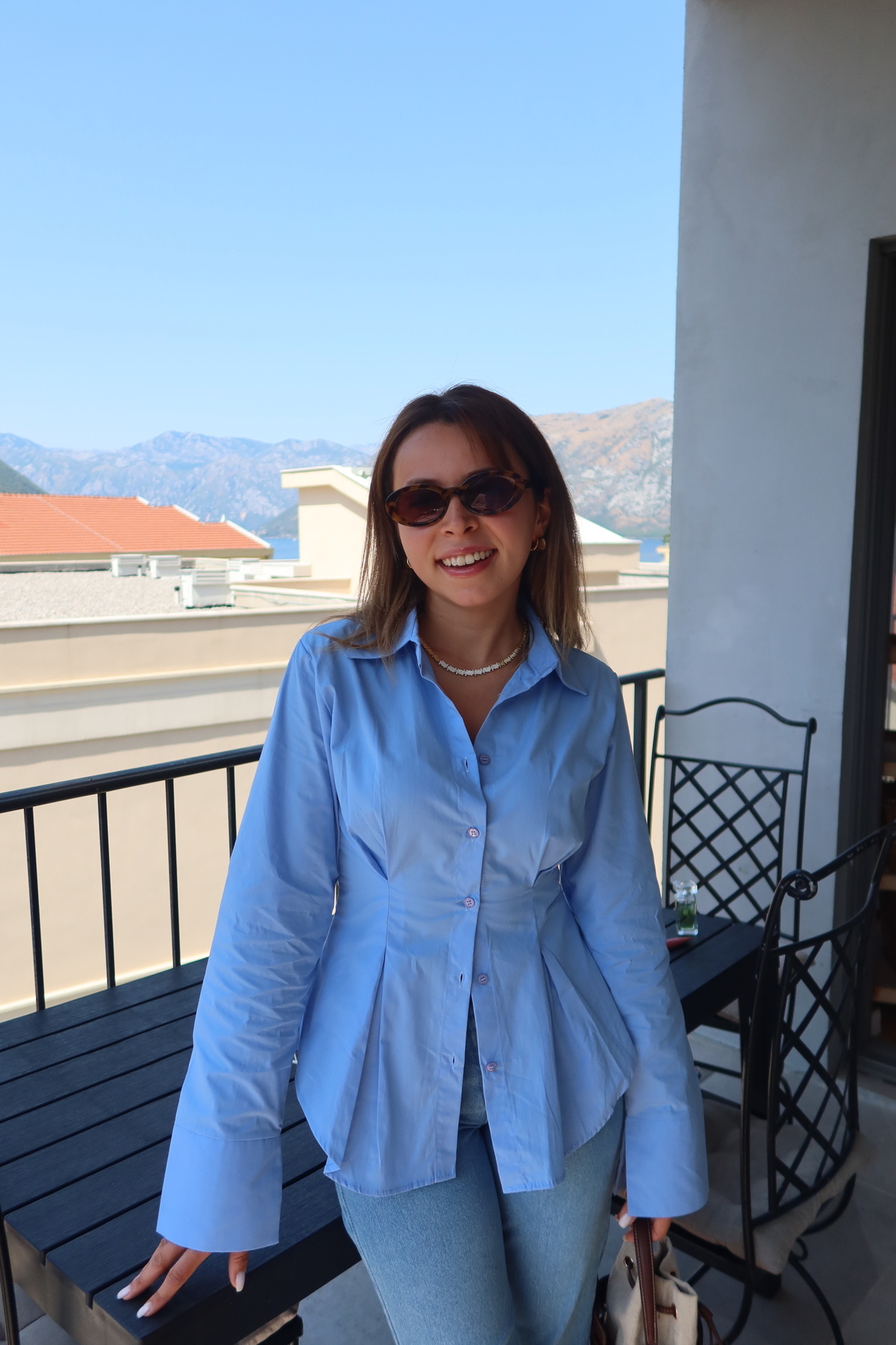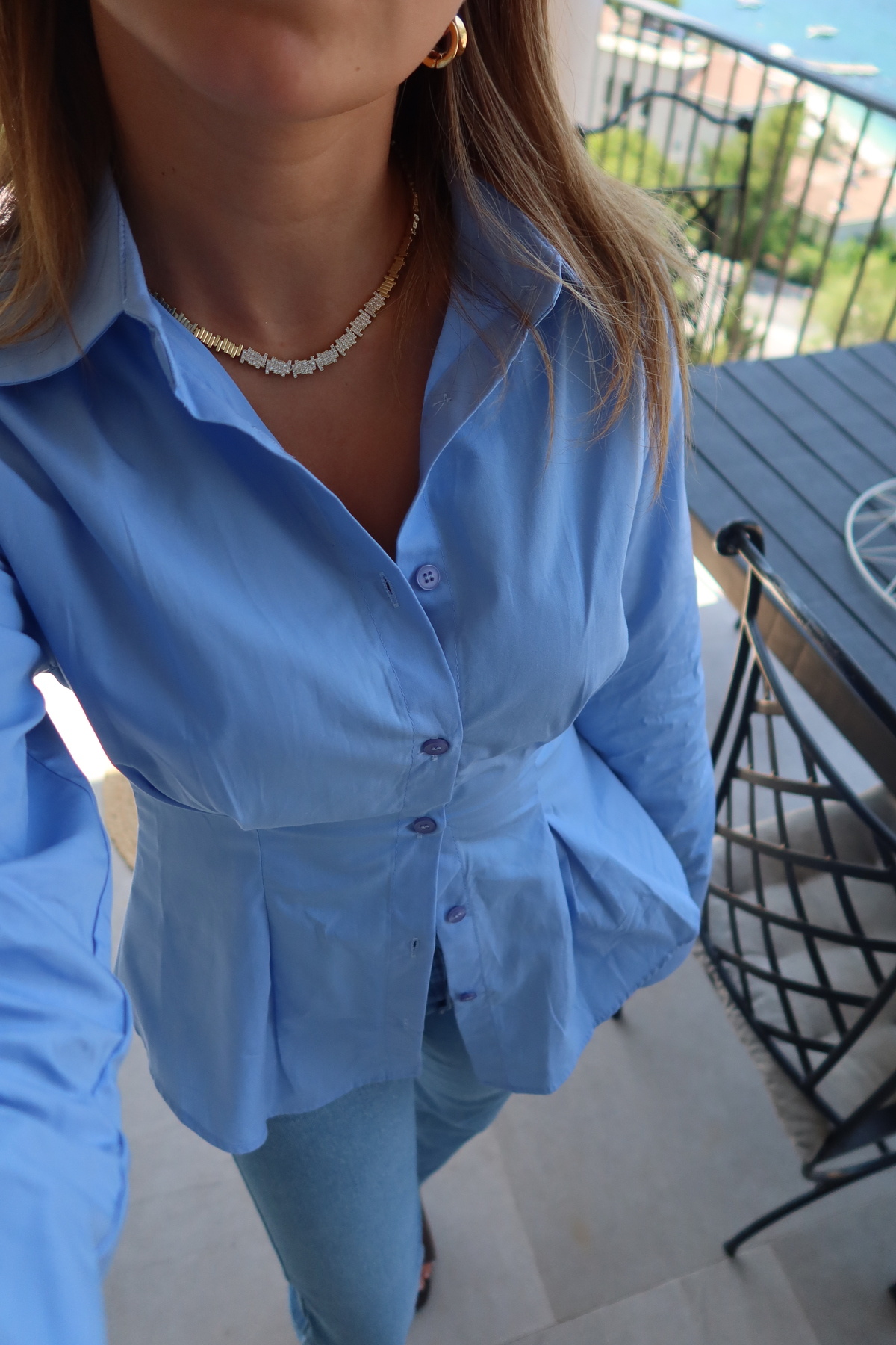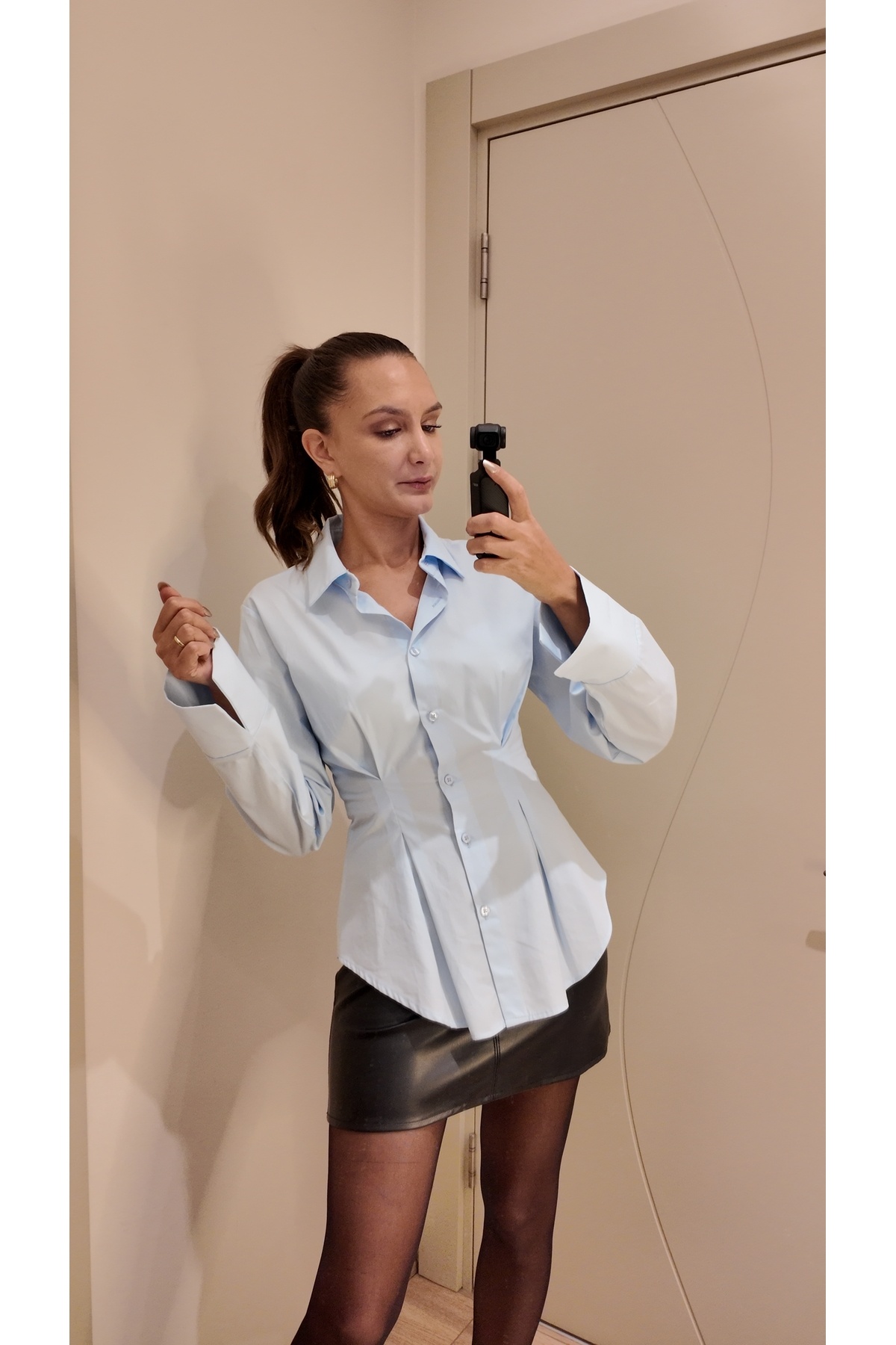 Premium Kalite Bel Detaylı Mavi Kadın Gömlek Premium Kalite Bel Detaylı Mavi Kadın Gömlek blwmgm L