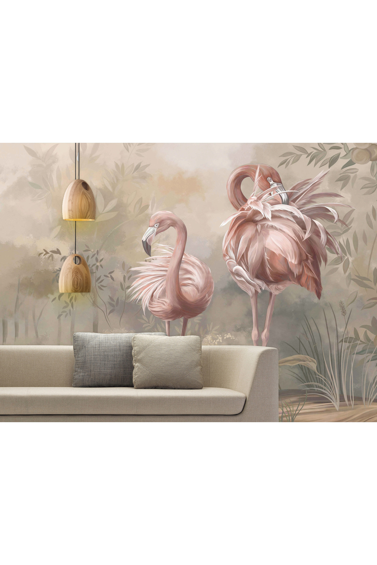Pembe Flamingo ve Tropikal Yaprak Desenli Duvar Kağıdı Poster Pembe Flamingo ve Tropikal Yaprak Desenli Duvar Kağıdı Poster BF1049-H-9807110 350 x 240