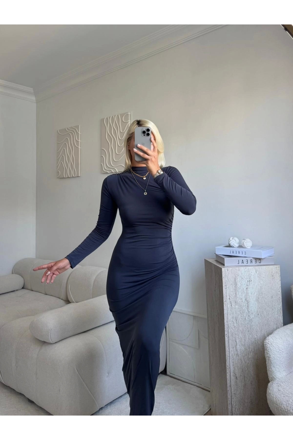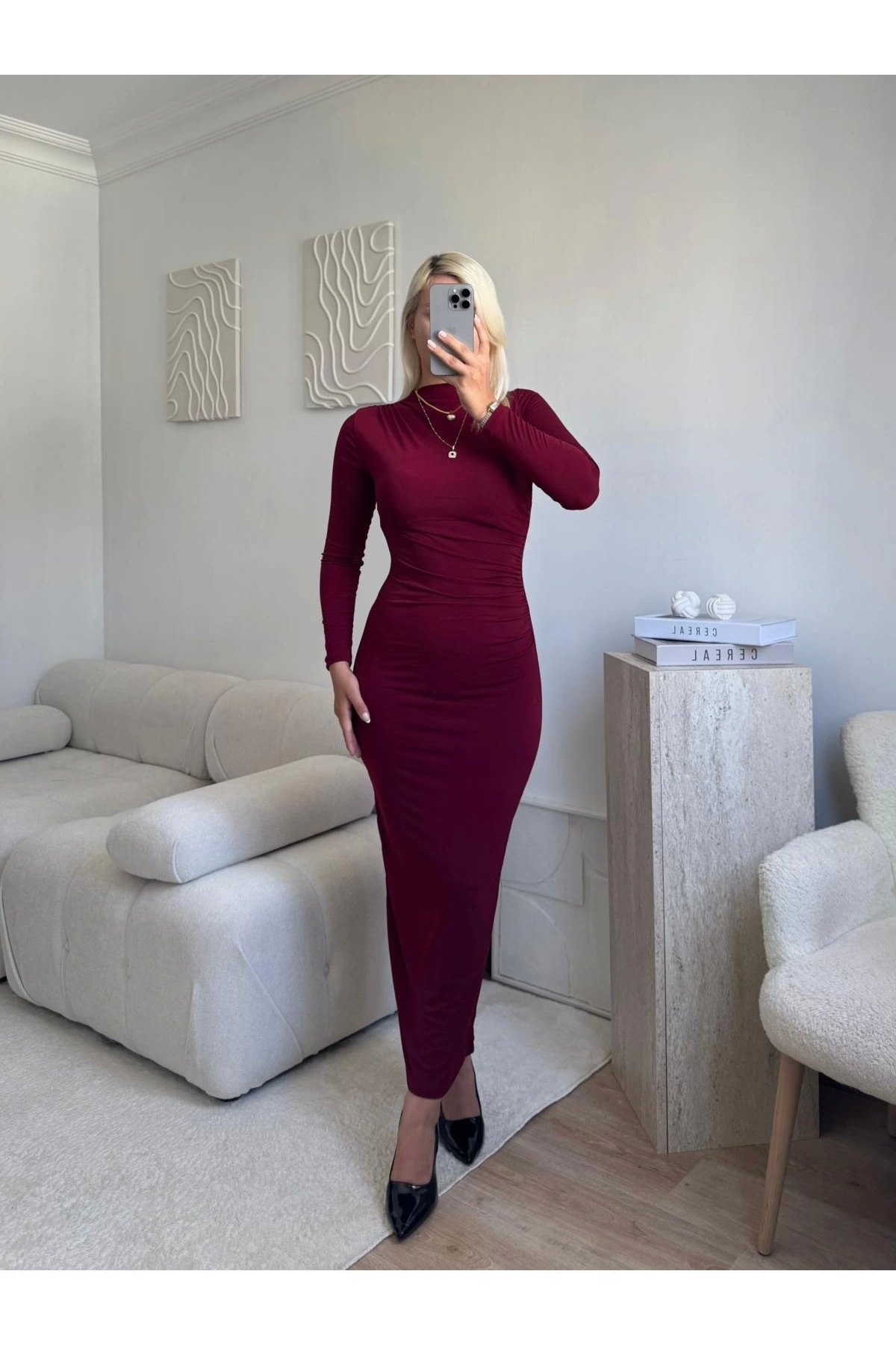 Yan Drapeli Long Elbise - BORDO Yan Drapeli Long Elbise - BORDO P3396S5918 XL