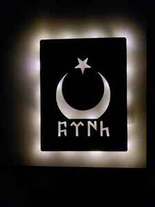 AA Pilli Ledli Göktürkçe Türk Yazılı Tablo, Ay Yıldız Tablo, Işıklı Türk Bayrağı AA Pilli Ledli Göktürkçe Türk Yazılı Tablo, Ay Yıldız Tablo, Işıklı Türk Bayrağı sem0118 30 x 40