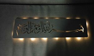 AA Pilli Ledli Bismillahirrahmanirrahim Tablo, Işıklı Besmele Tablo, İslami Ahşap Tablo AA Pilli Ledli Bismillahirrahmanirrahim Tablo, Işıklı Besmele Tablo, İslami Ahşap Tablo sem0123 65 x 18