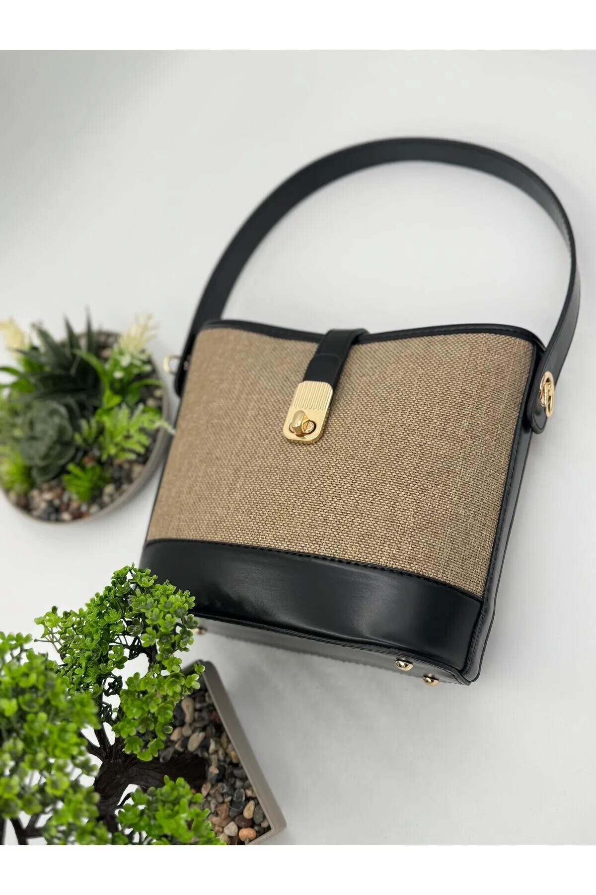 Omuz ve Çapraz Askılı Şık Hasır Detaylı çanta Omuz ve Çapraz Askılı Şık Hasır Detaylı çanta OT00076 تک سایز