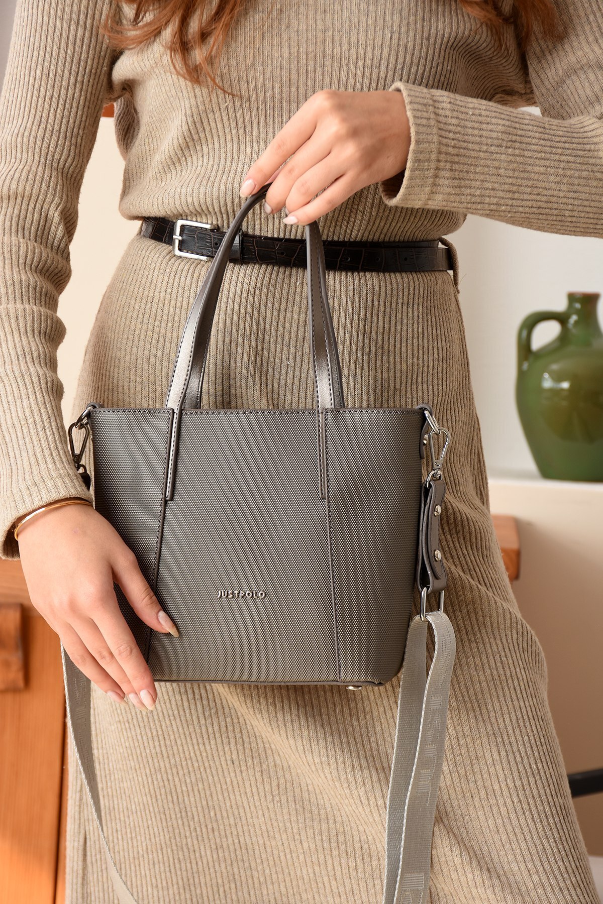 Omuz ve Çapraz Askılı Şık Hasır Detaylı çanta Omuz ve Çapraz Askılı Şık Hasır Detaylı çanta OT00076 تک سایز