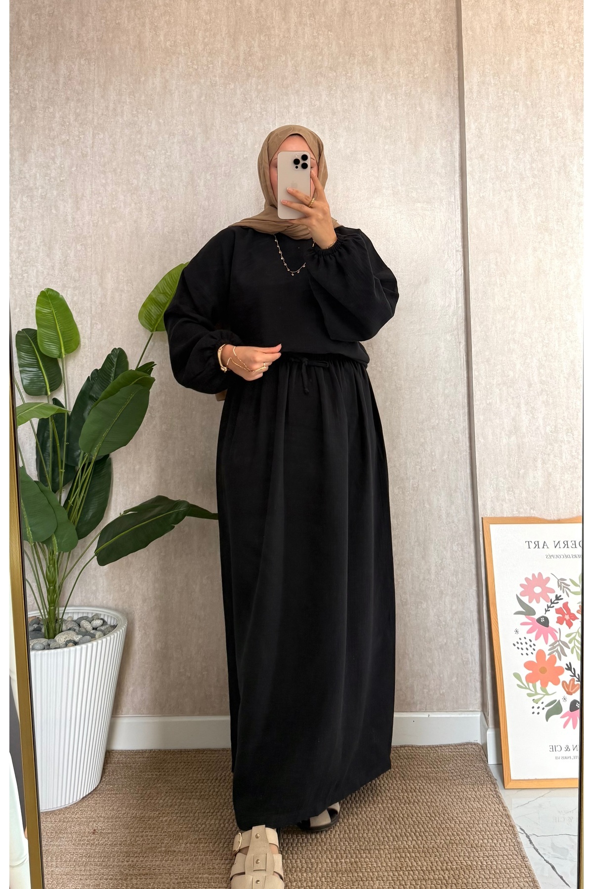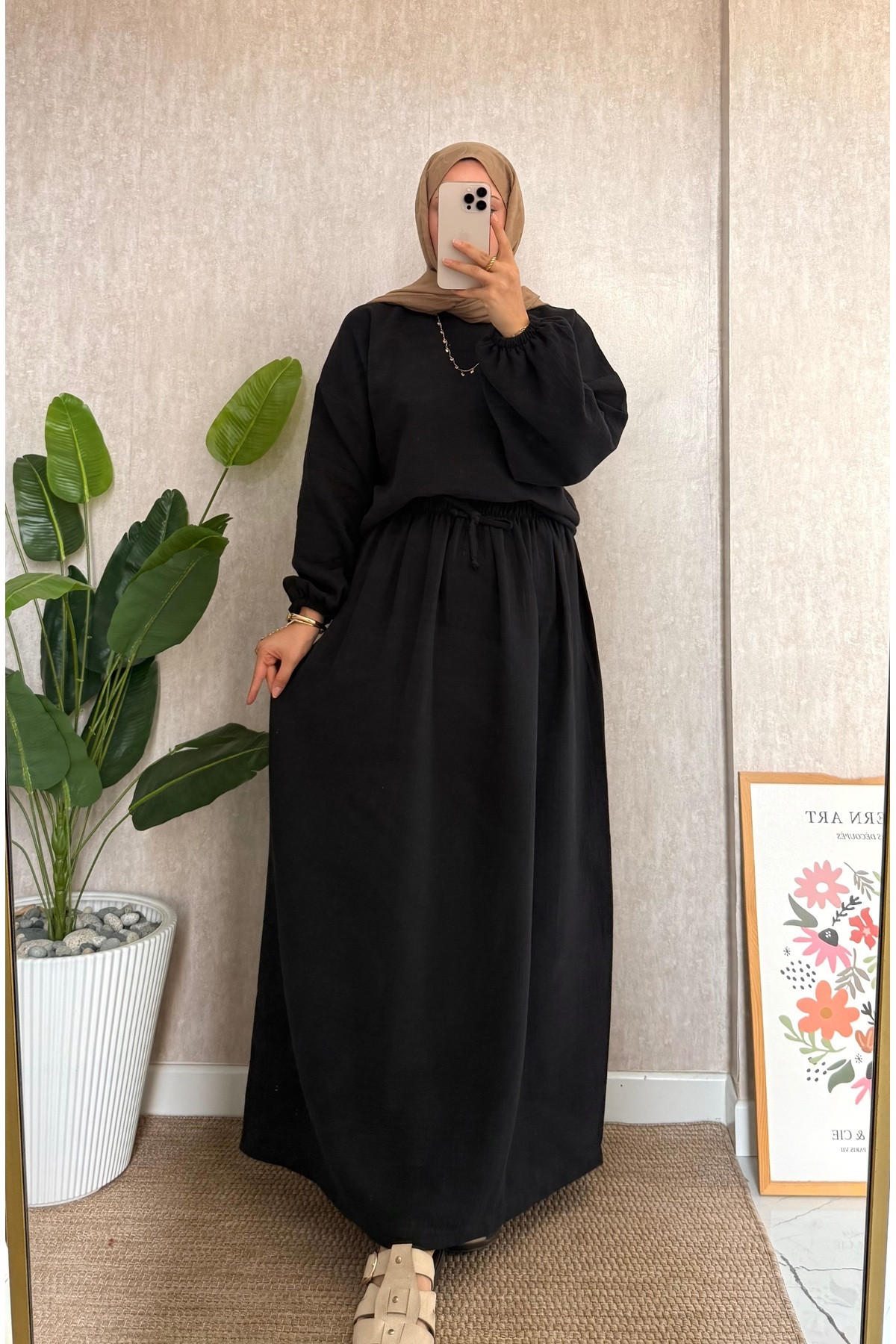 Siyah Müslin Etekli Kolu Lastikli Salaş Takım Siyah Müslin Etekli Kolu Lastikli Salaş Takım YSMT-08 40-42