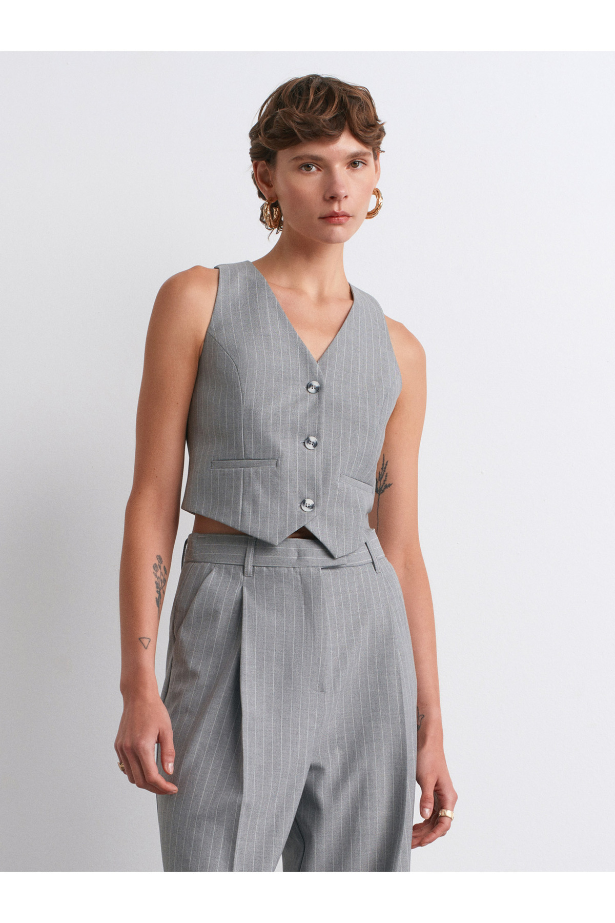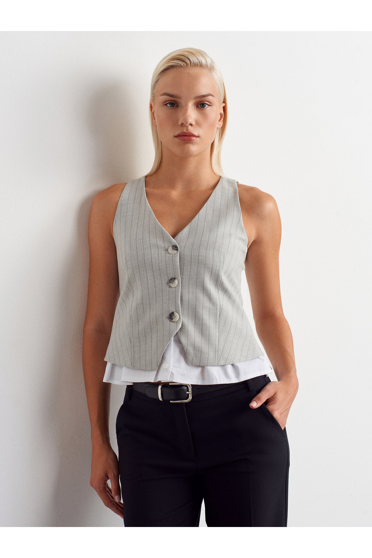 60596 Arkası Dekolteli Yelek-Gri 60596 Arkası Dekolteli Yelek-Gri 101A60596 40