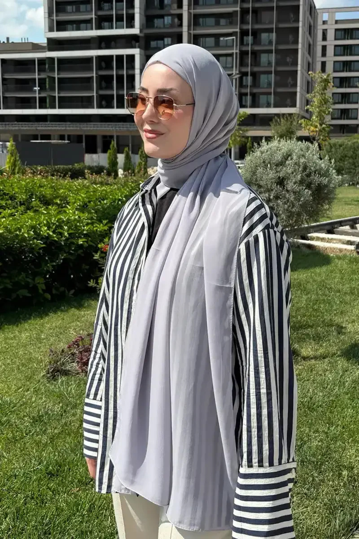 Krep Şifon Şal - Gri Krep Şifon Şal - Gri T1137-1 تک سایز