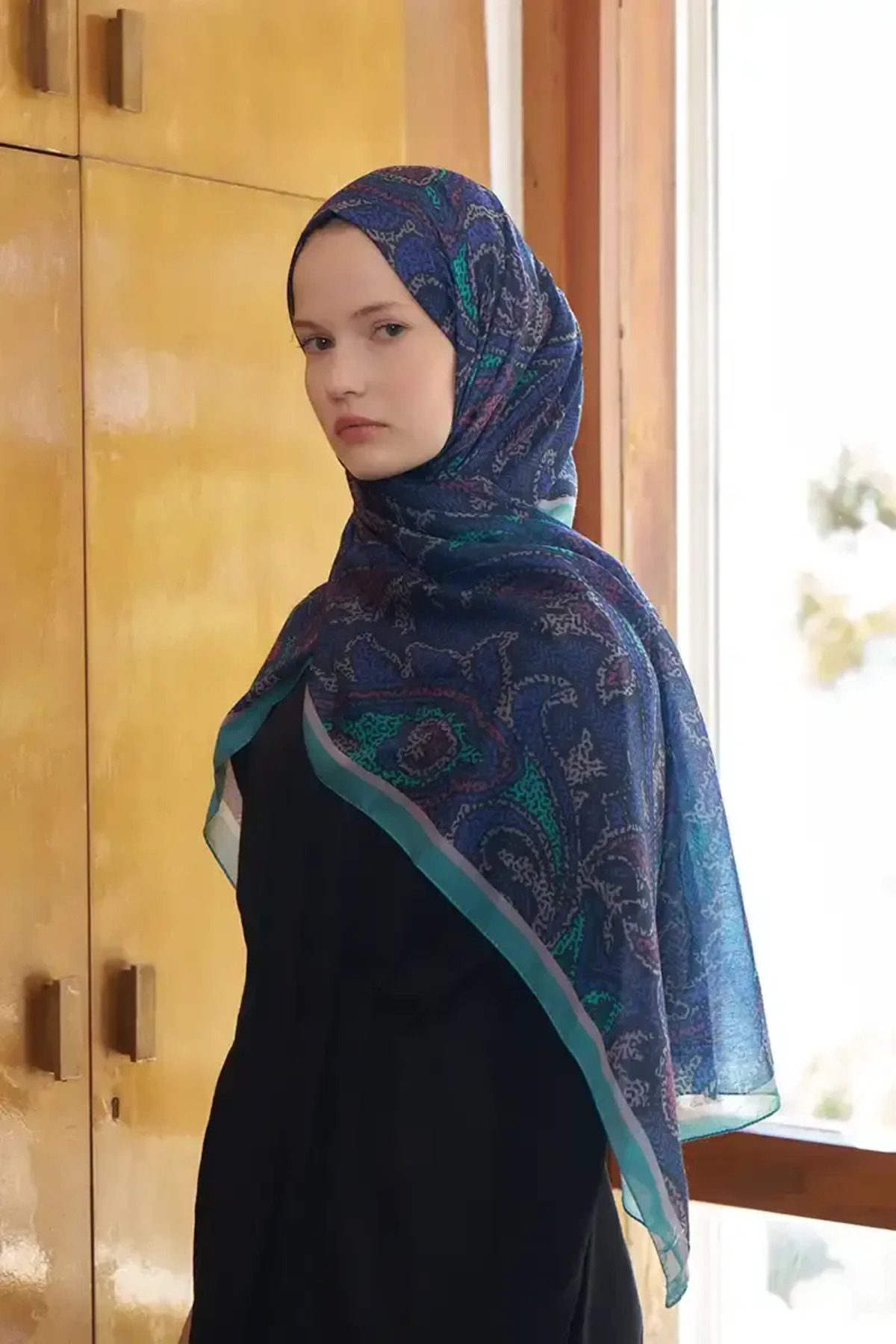 Endless Brise Desen Şal - Gece Mavisi Endless Brise Desen Şal - Gece Mavisi T1135-4 تک سایز