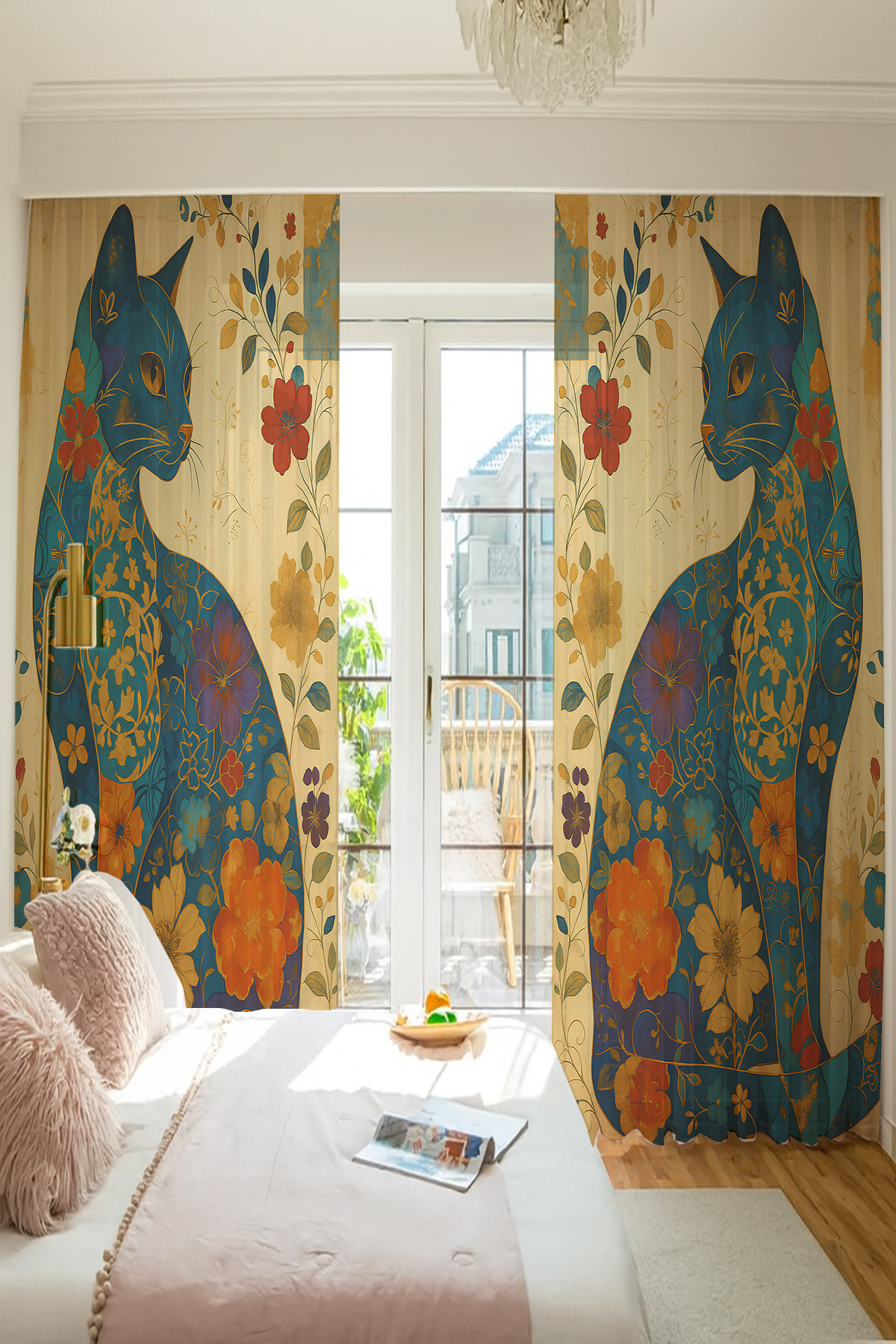 Vintage Kedi Çiçek Desenli Çift Kanatlı Tül Perde Oturma Odası Salon Mutfak 140x260cm Vintage Kedi Çiçek Desenli Çift Kanatlı Tül Perde Oturma Odası Salon Mutfak 140x260cm elsedkrtulsyt 140 x 260