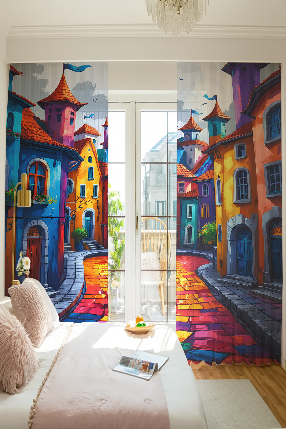 Renkli Sokak Manzaralı Desenli Çift Kanatlı Tül Perde Oturma Odası Salon Mutfak 140x260cm Renkli Sokak Manzaralı Desenli Çift Kanatlı Tül Perde Oturma Odası Salon Mutfak 140x260cm elsedkrtulsyt 140 x 260