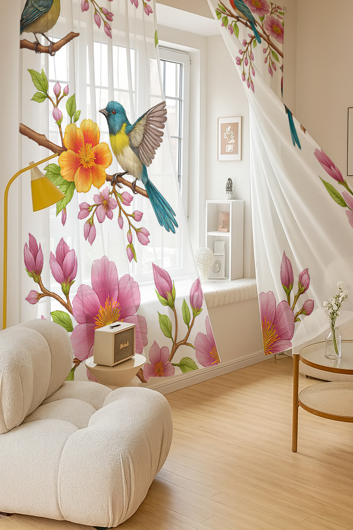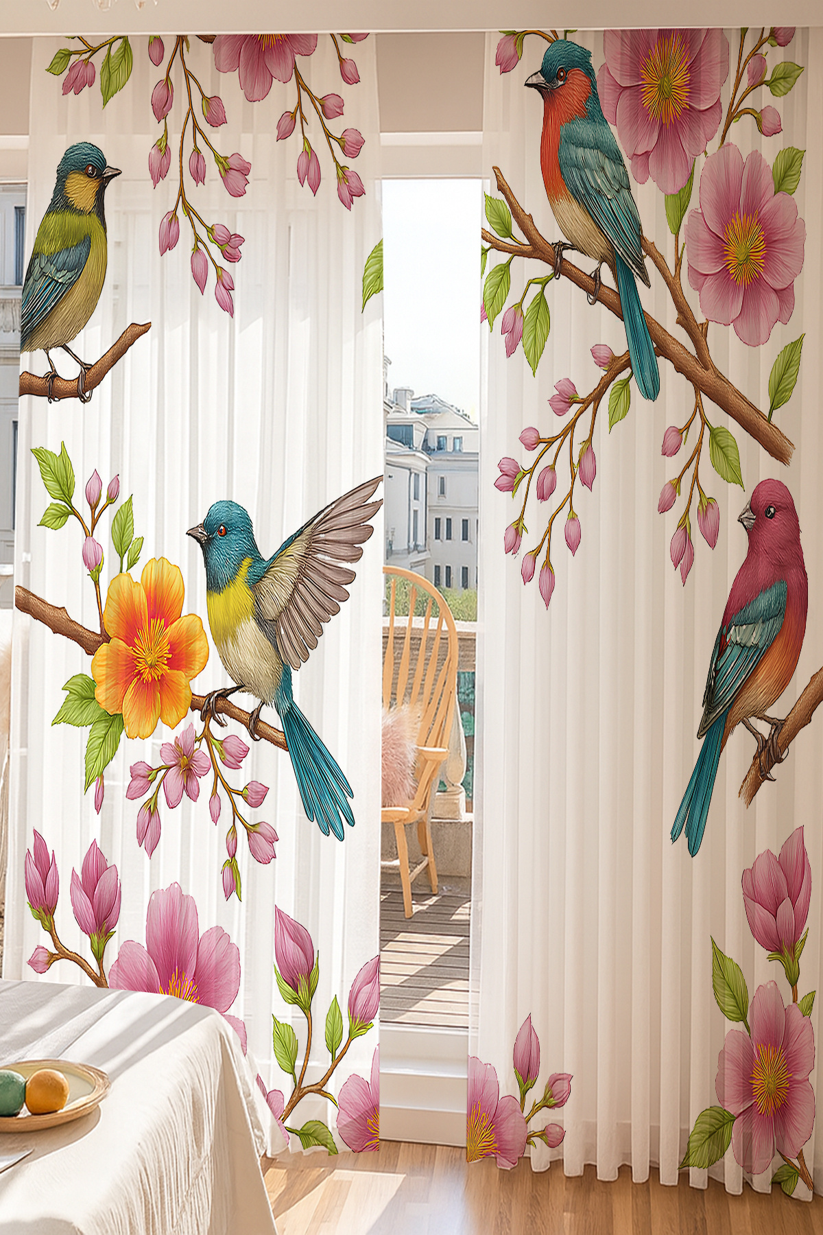 Bahar Temalı Renkli Kuş Çiçekler Desenli Çift Kanatlı Tül Perde Oturma Odası Salon Mutfak Bahar Temalı Renkli Kuş Çiçekler Desenli Çift Kanatlı Tül Perde Oturma Odası Salon Mutfak 3delsekrbhr 140 x 260