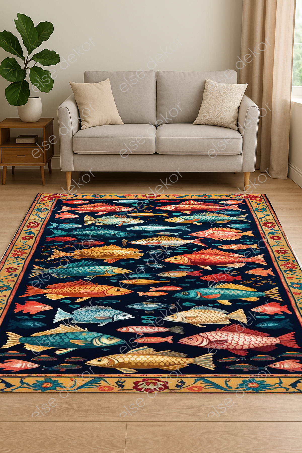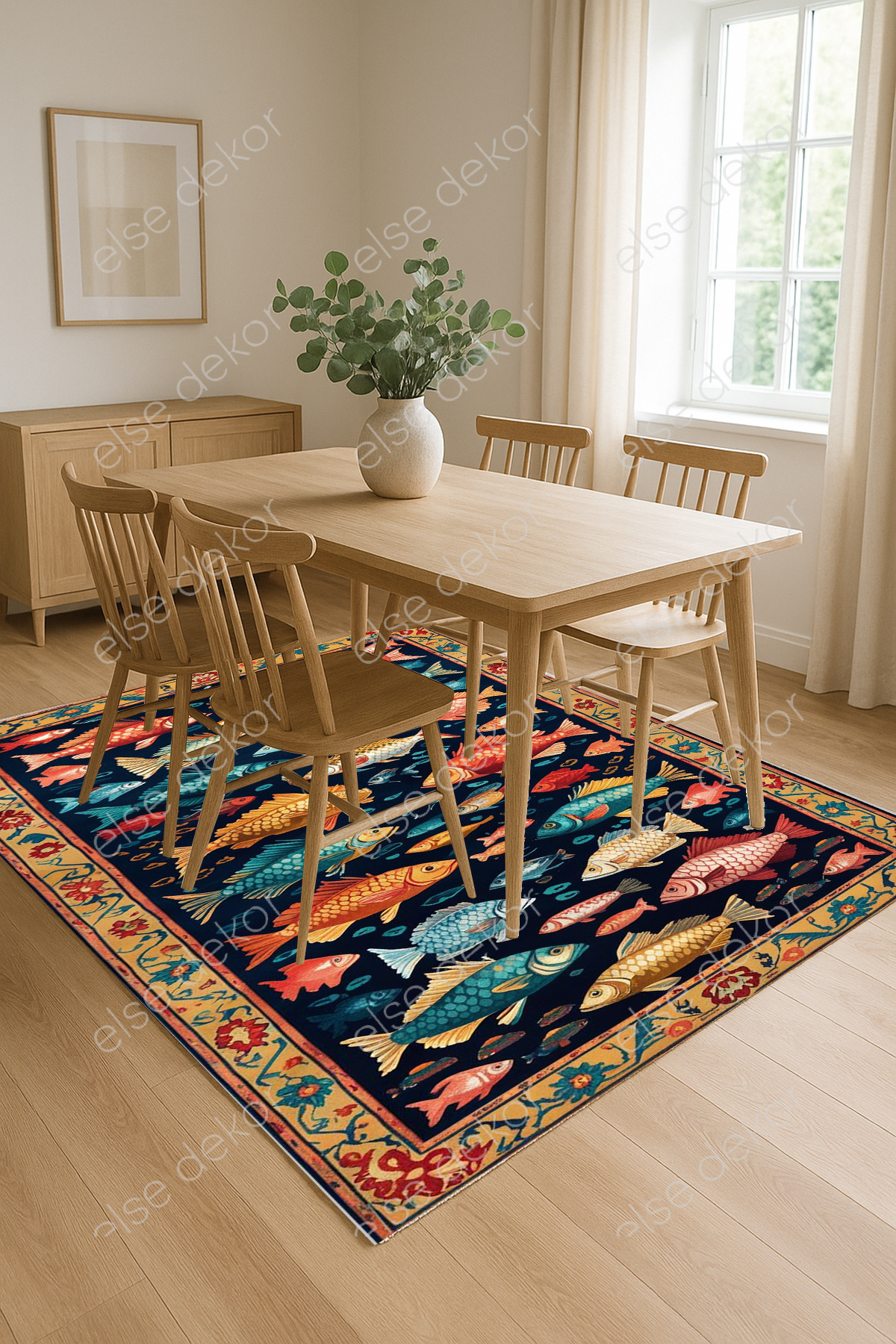 Renkli Balıklar Desenli Makinede Yıkanabilir Dokuma Şönil Halı Bohem Eskitme Vintage Mutfak Halısı Renkli Balıklar Desenli Makinede Yıkanabilir Dokuma Şönil Halı Bohem Eskitme Vintage Mutfak Halısı elsedkrsnlmutfk 160 x 230