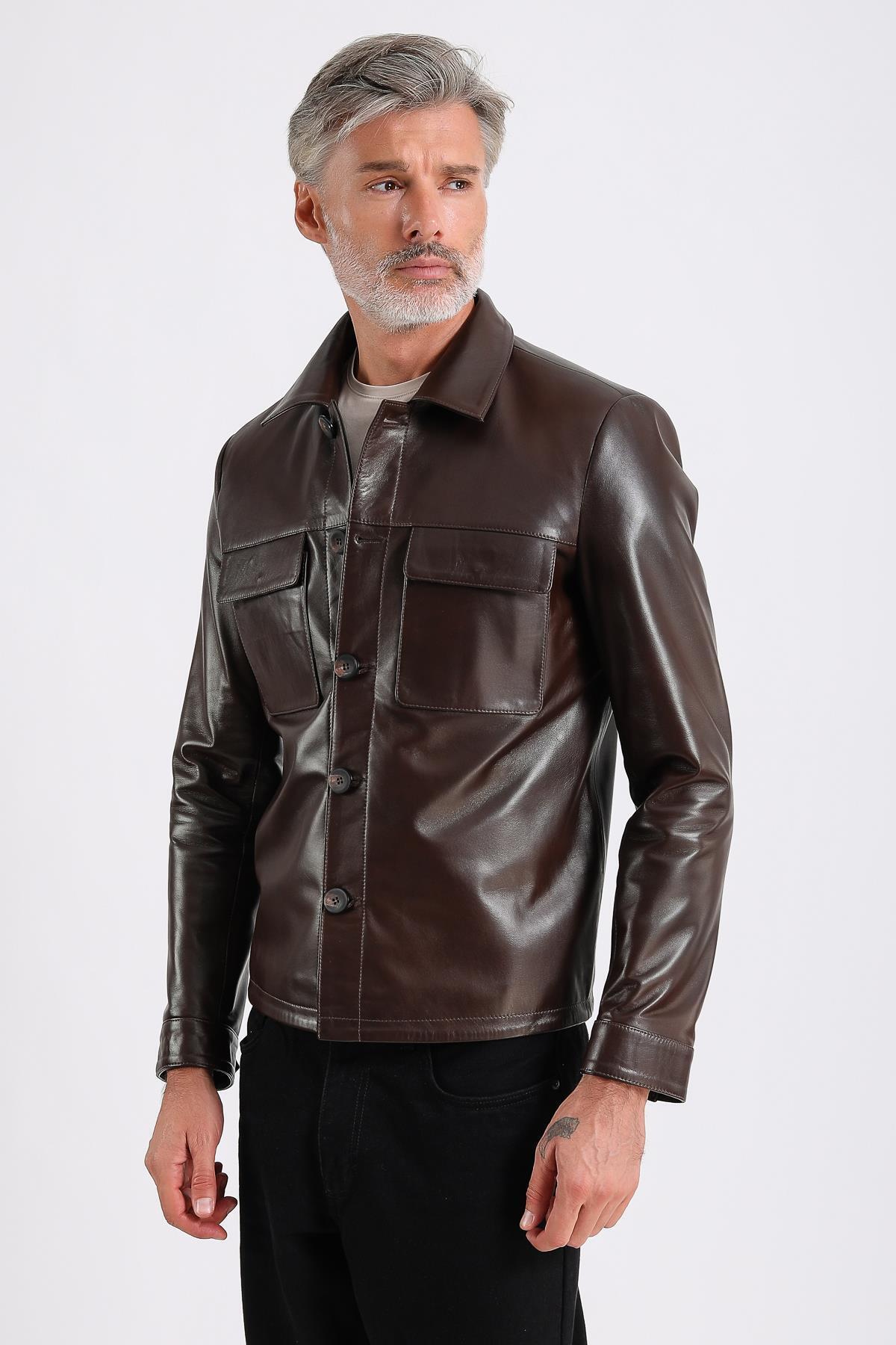Maroquin Leather Gent Erkek Siyah Deri Gömlek Maroquin Leather Gent Erkek Siyah Deri Gömlek E70(1)