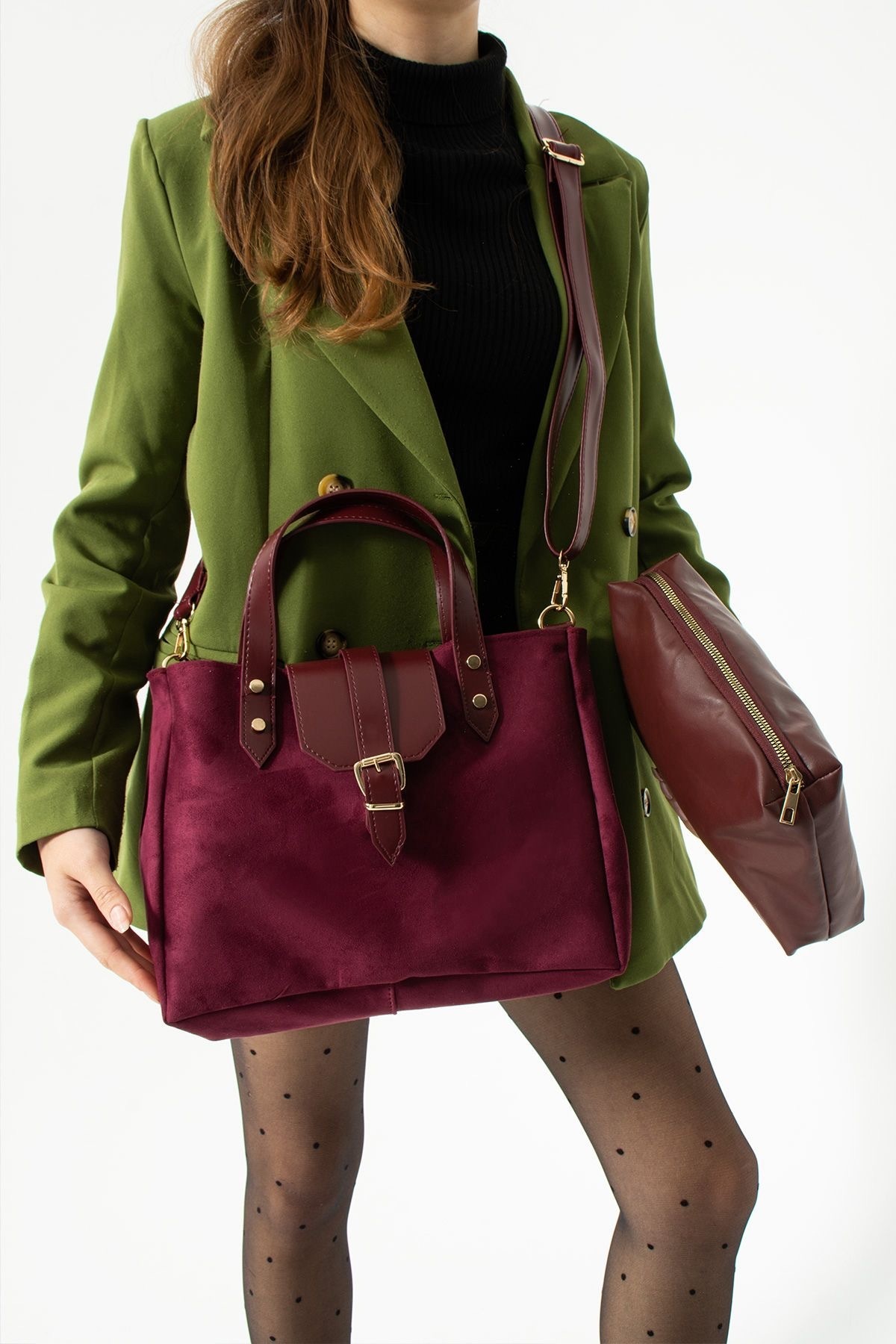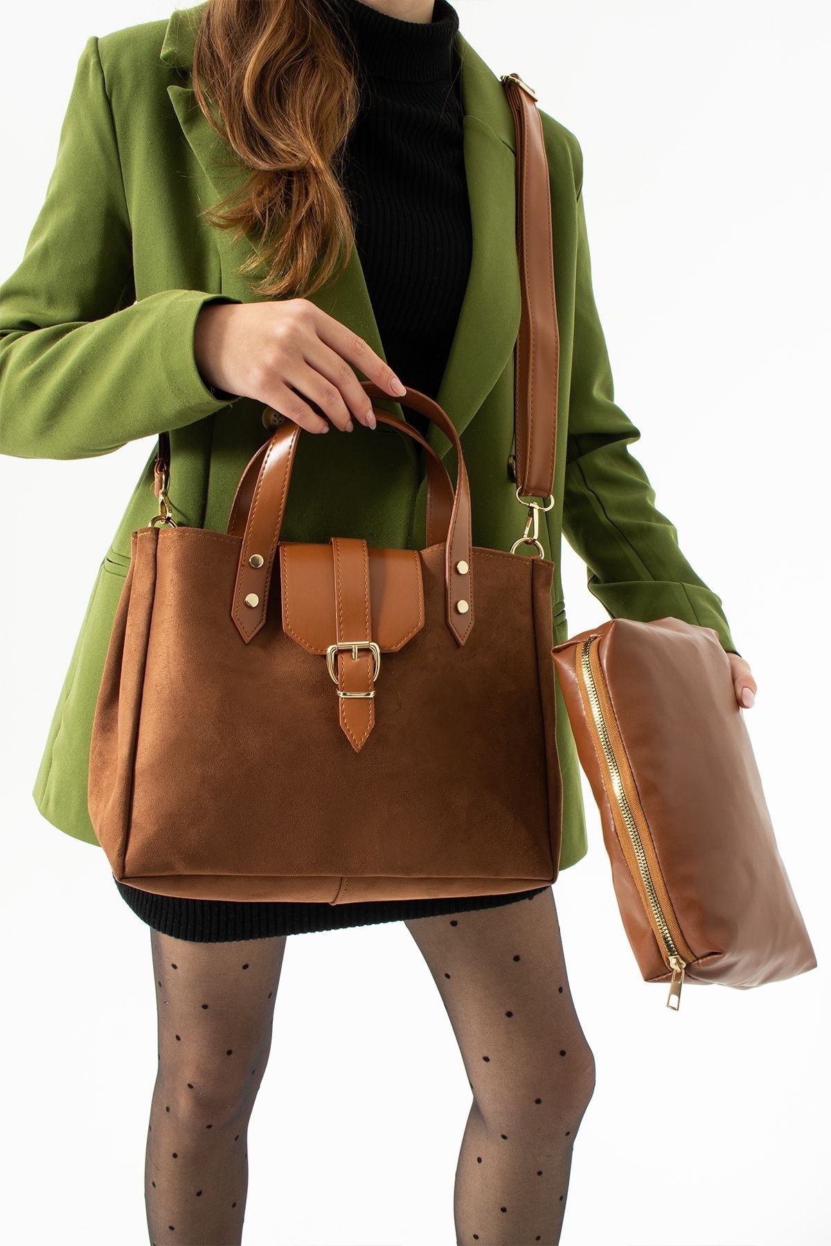 Lüks Süet ve Deri Detaylı Omuz çantası Lüks Süet ve Deri Detaylı Omuz çantası ESTSUETÇNTNW Standart