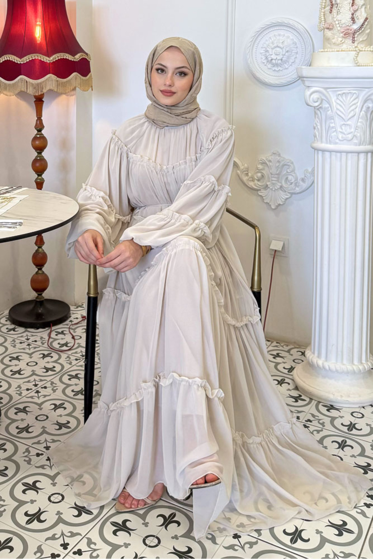 Şifon Fırfırlı Elbise - Sarı Şifon Fırfırlı Elbise - Sarı 9886 تک سایز