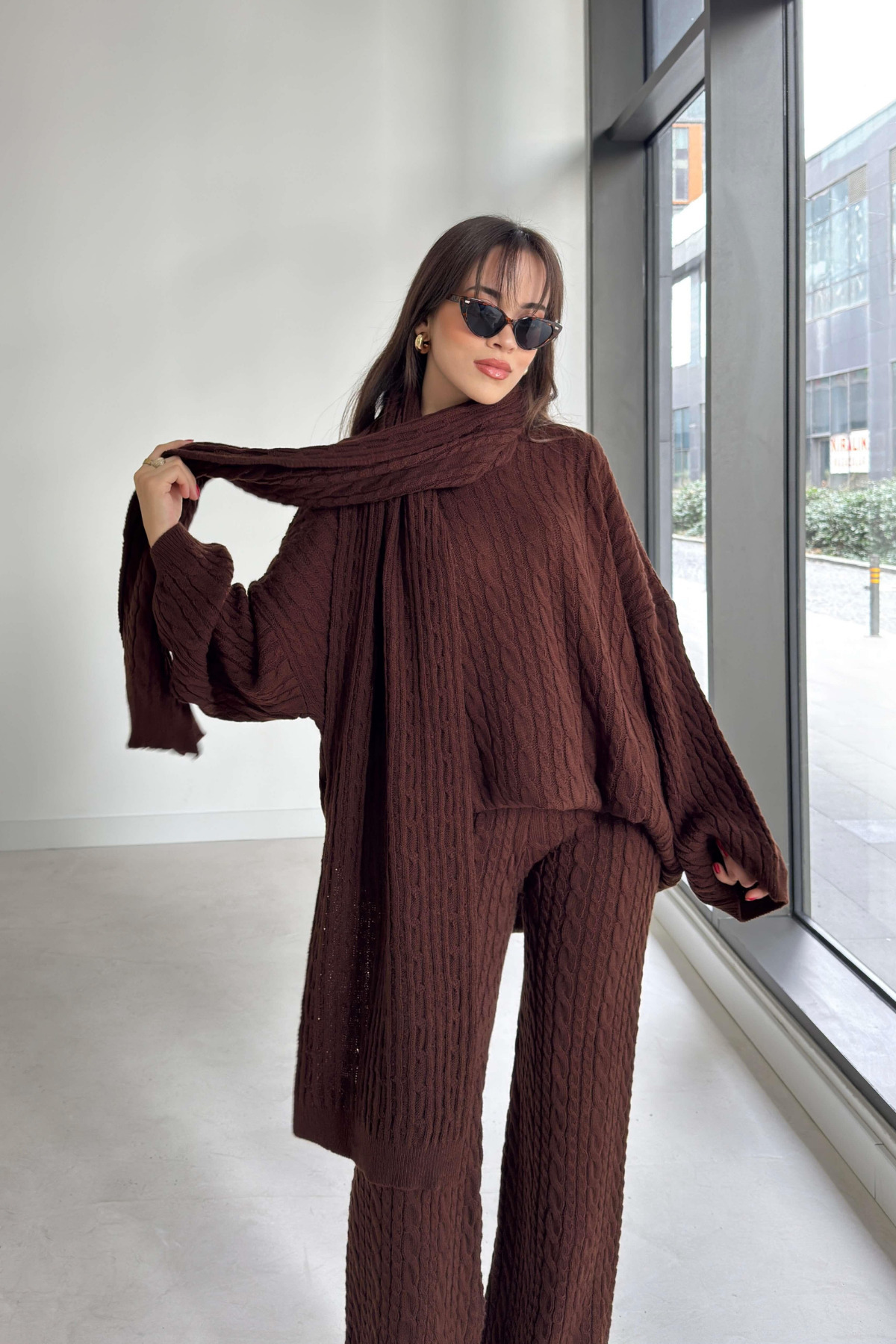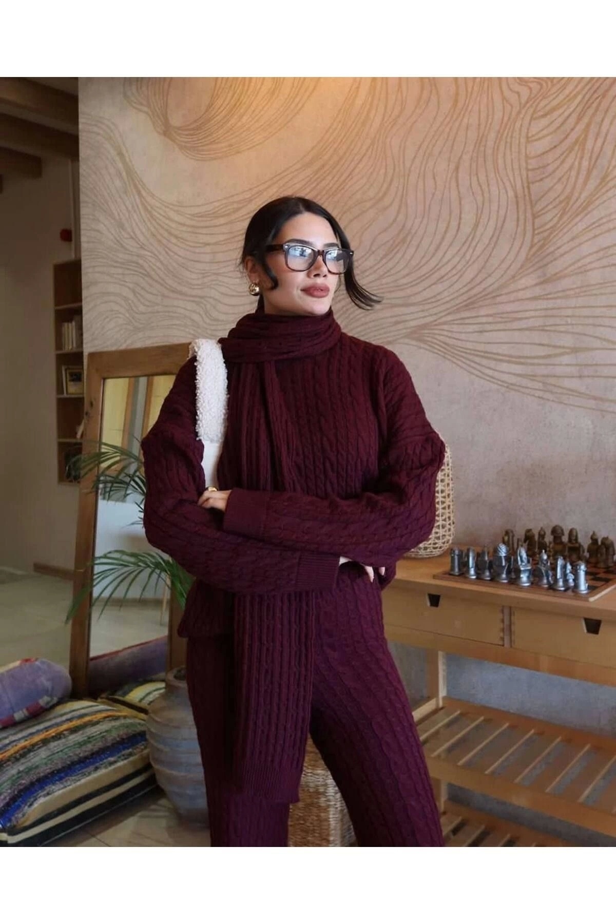 Kadın Bordo Atkılı Saç Örgülü Pantolon Kazak Atkı 3'lü Takım Kadın Bordo Atkılı Saç Örgülü Pantolon Kazak Atkı 3'lü Takım P691S4944 Standart