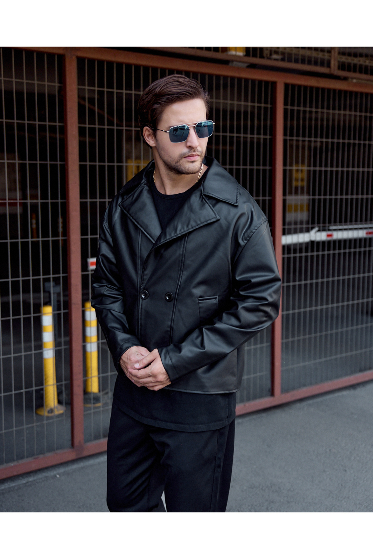 Günlük ve Özel Kombinlere Uygun Siyah Deri Erkek Ceket Günlük ve Özel Kombinlere Uygun Siyah Deri Erkek Ceket düğmelidericeket 2XL