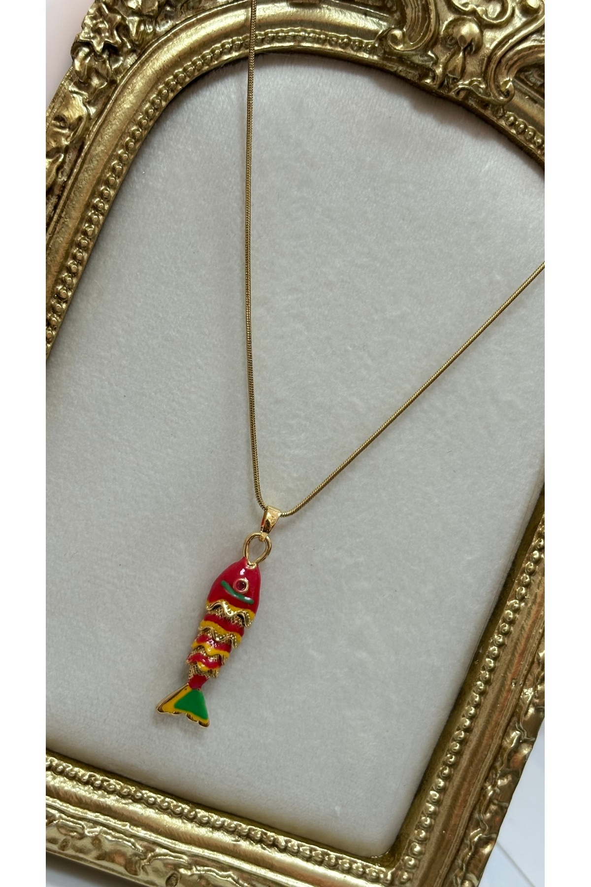 Balıklı Çelik Kolye Kırmızı Balıklı Çelik Kolye Kırmızı MK447 Standart