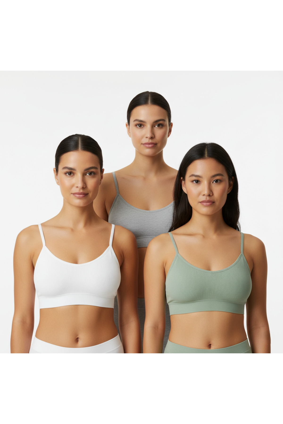İnce Askılı Fitilli Büstiyer 3'lü Paket– Çıkarılabilir Pedli - Yumuşak & Esnek (Bralet) İnce Askılı Fitilli Büstiyer 3'lü Paket– Çıkarılabilir Pedli - Yumuşak & Esnek (Bralet) 27 90/95