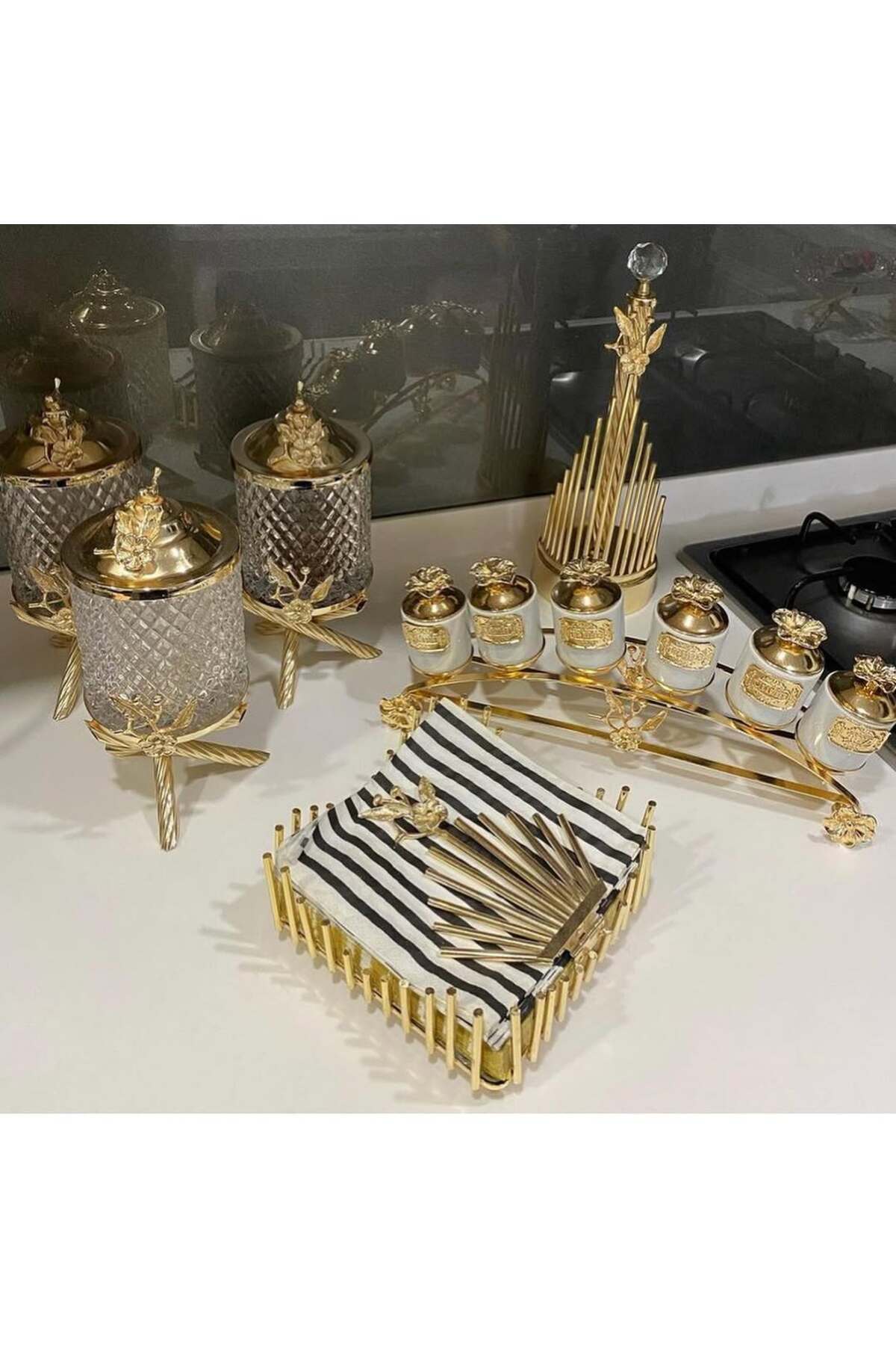 GOLD PİRİNÇ JAPONGÜL STANDLI KARE 4’LÜ MUTFAK SET GOLD PİRİNÇ JAPONGÜL STANDLI KARE 4’LÜ MUTFAK SET 5373825Y تک سایز
