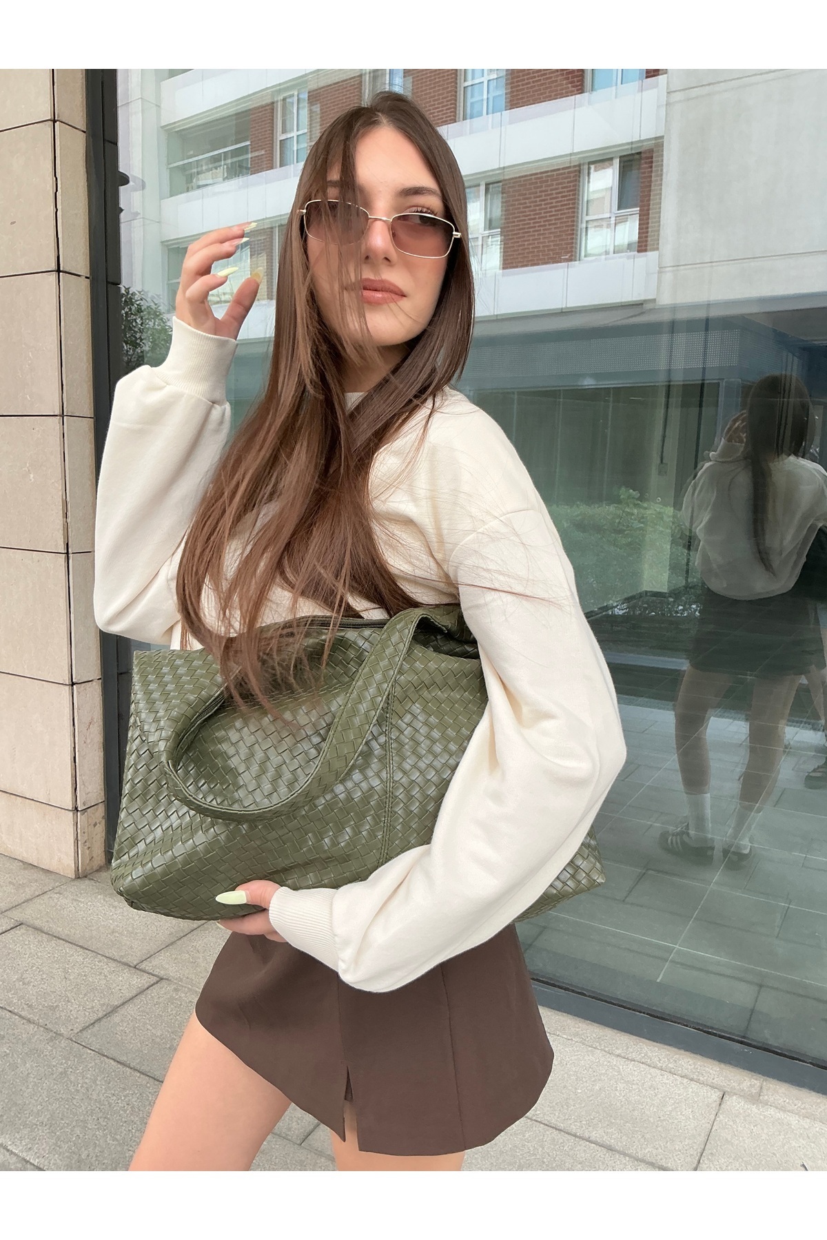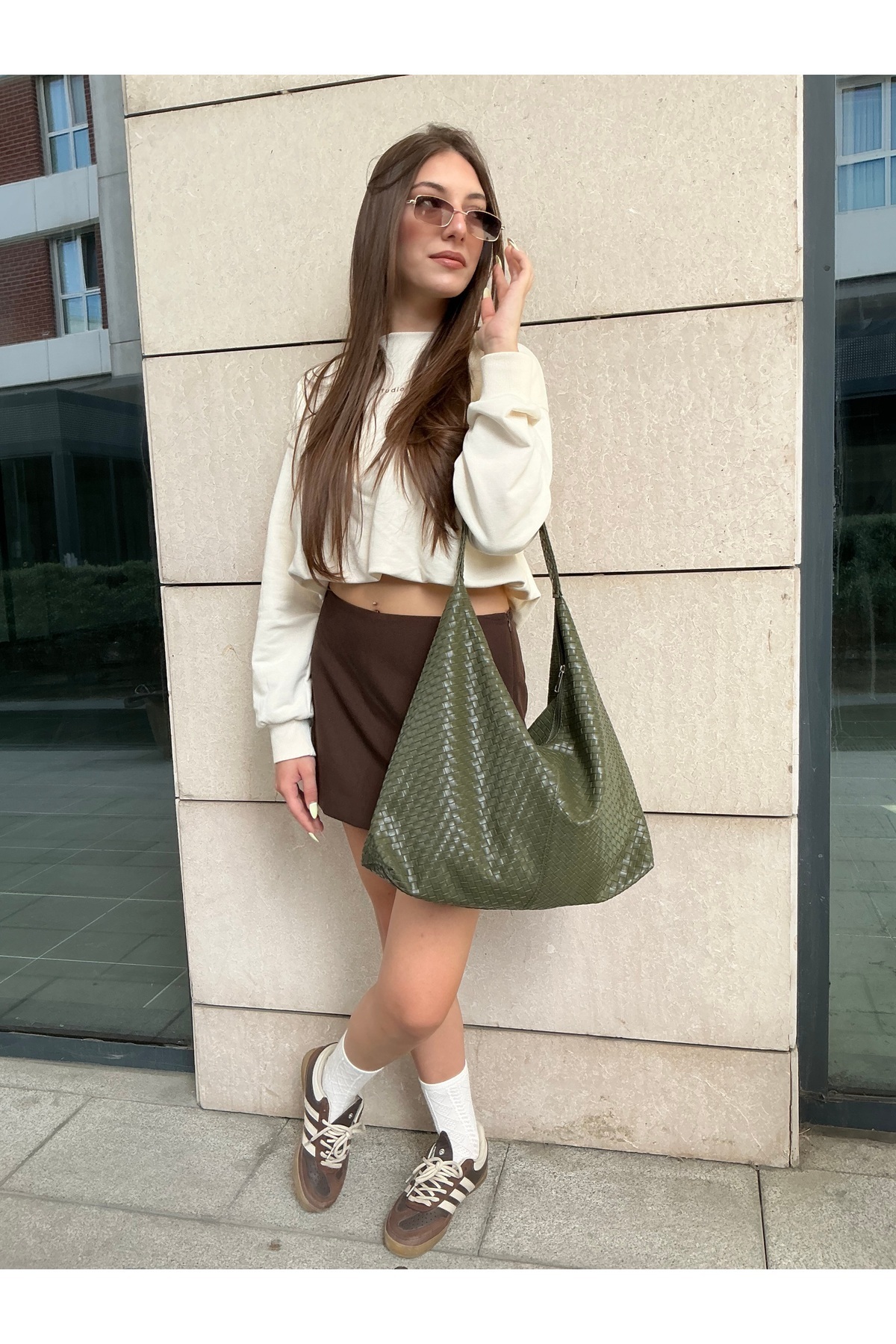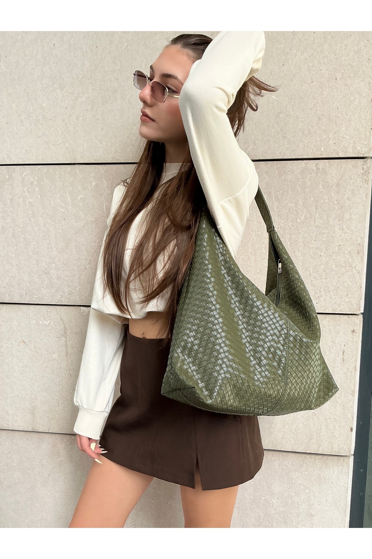 VERONA Örgü Dokulu Salaş Görünümlü ve Geniş Hacimli Suni Deri Kadın Omuz Çantası VERONA Örgü Dokulu Salaş Görünümlü ve Geniş Hacimli Suni Deri Kadın Omuz Çantası YAKO00059 تک سایز