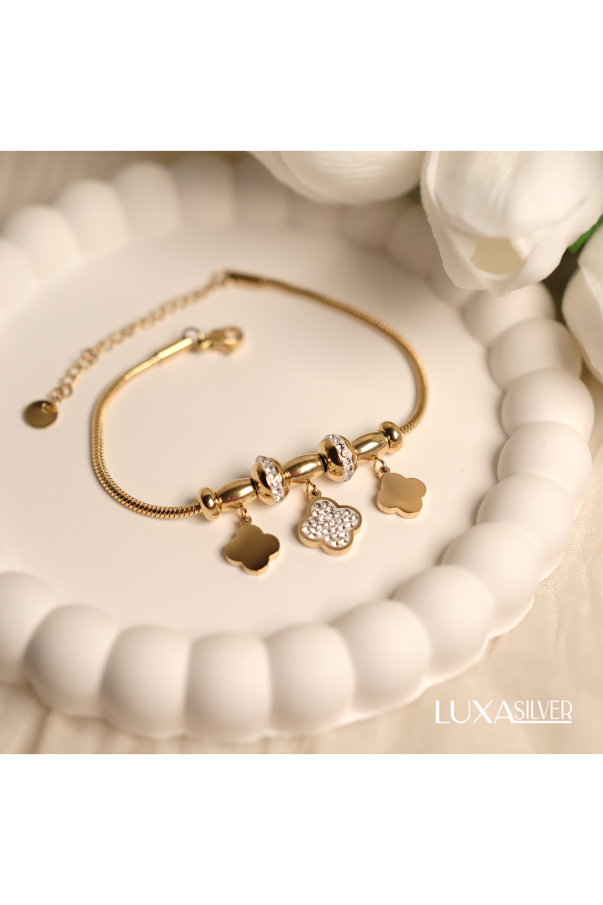 316L Çelik Nazar Boncuk Detaylı Yonca Model İtalyan Zincir Gold Renk Kadın Bileklik 316L Çelik Nazar Boncuk Detaylı Yonca Model İtalyan Zincir Gold Renk Kadın Bileklik eb_BB7826 تک سایز