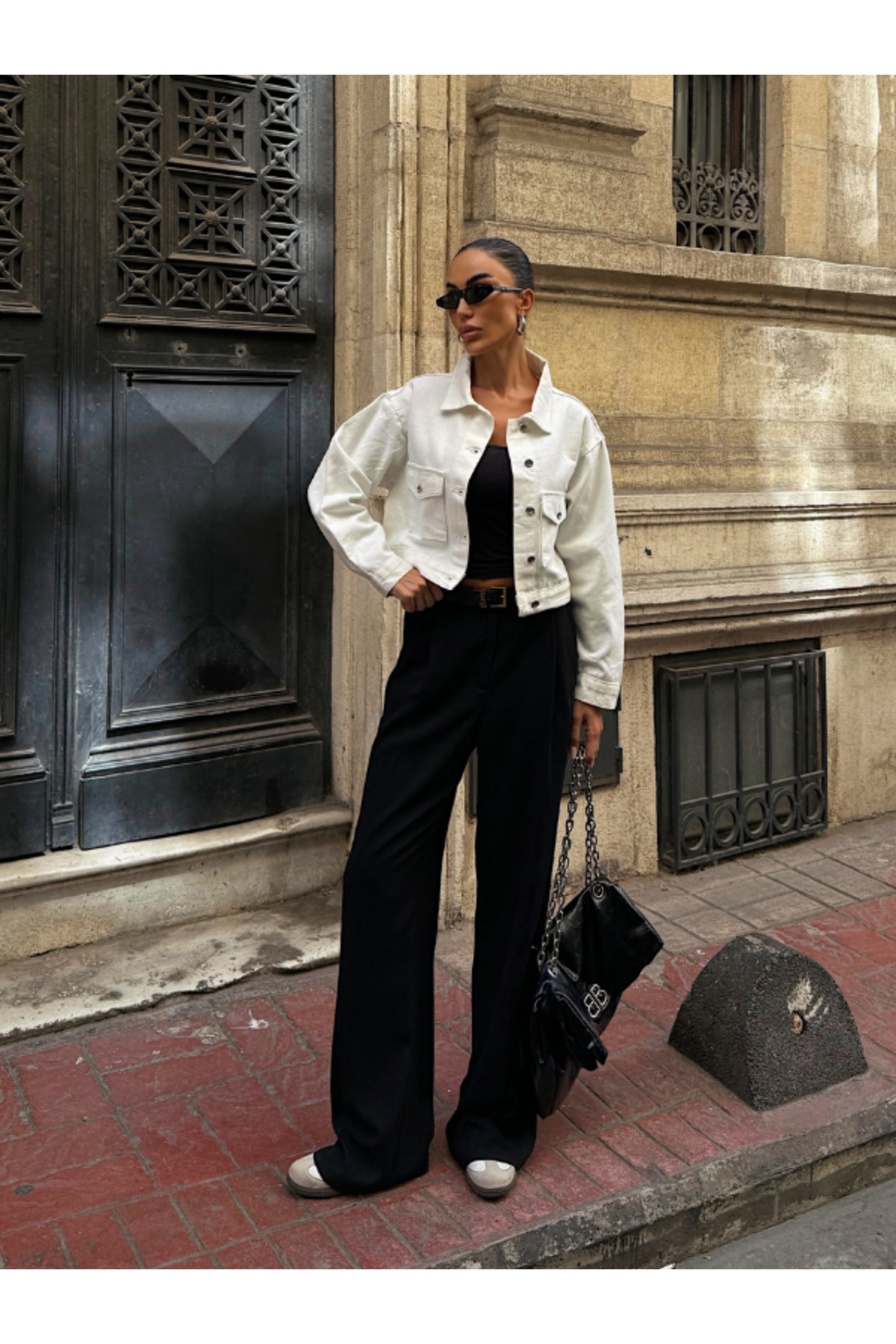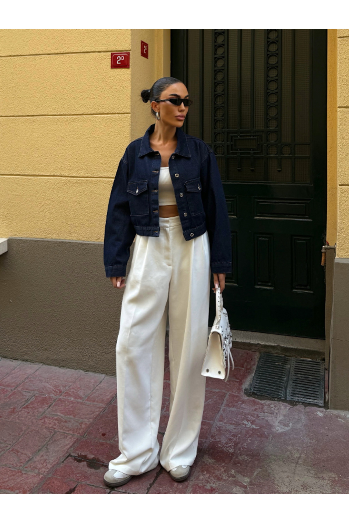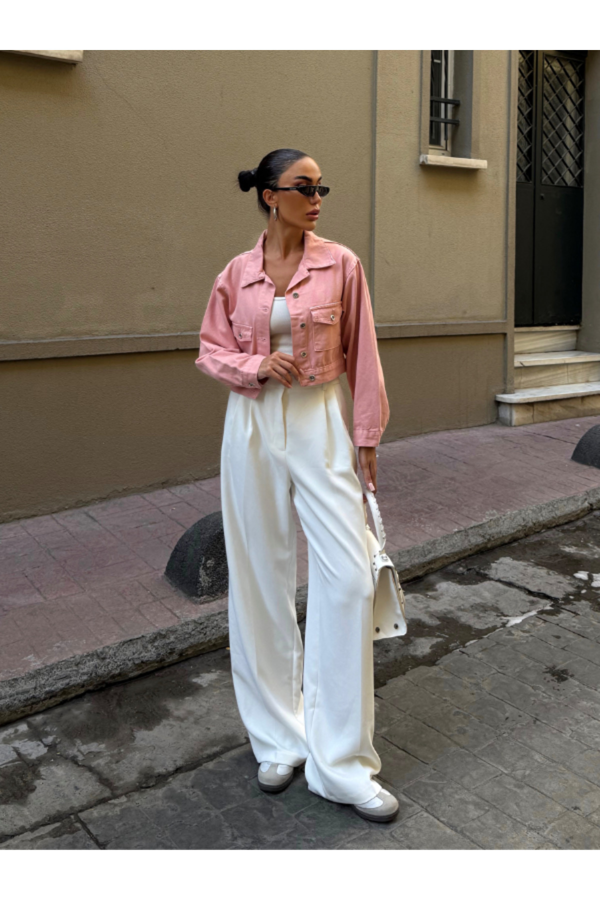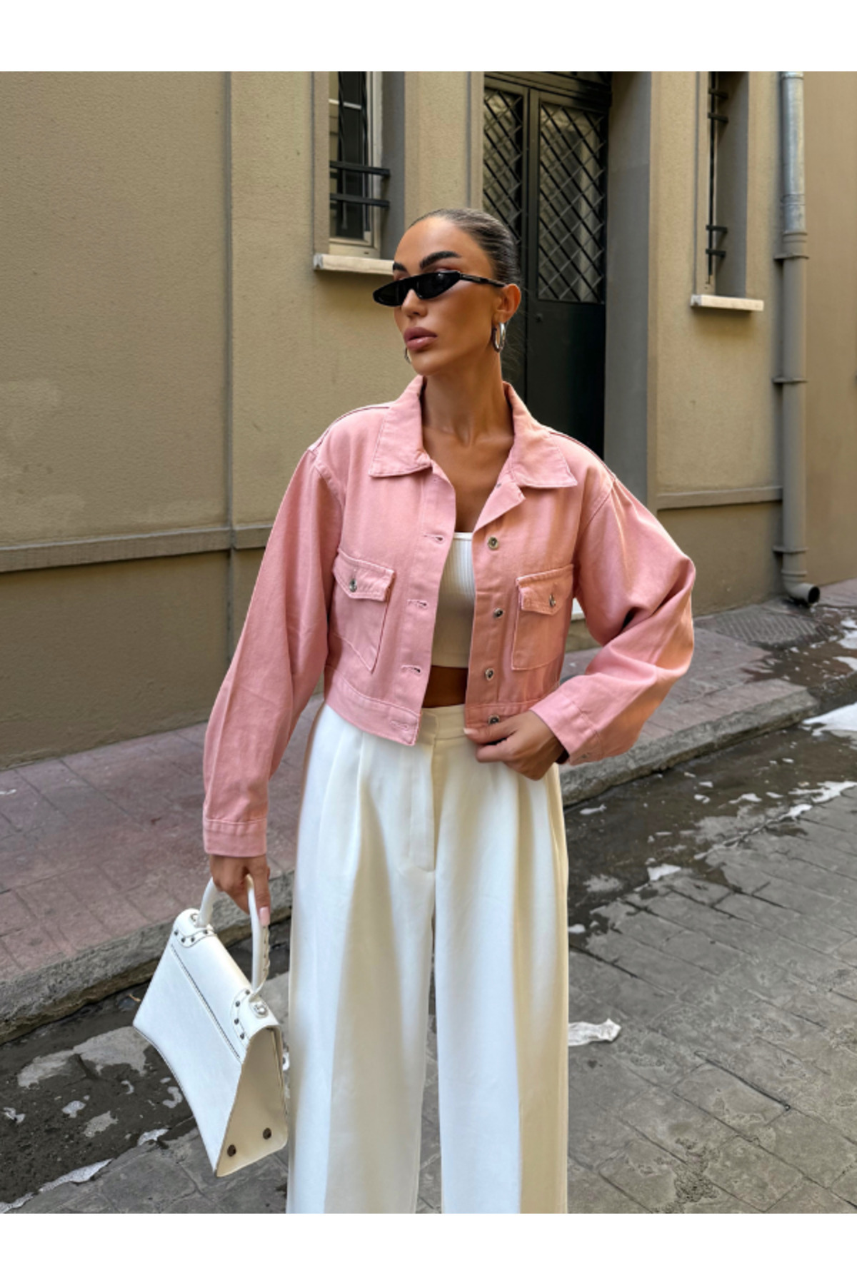 Kadın Çift Cepli Crop Denim Ceket Pembe Kadın Çift Cepli Crop Denim Ceket Pembe CKT0034 L