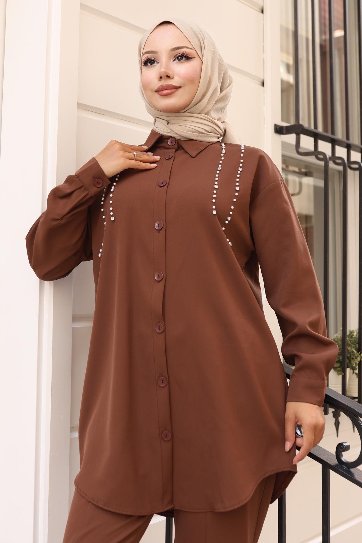 İnci Detaylı Takım Kahverengi 19259 İnci Detaylı Takım Kahverengi 19259 48