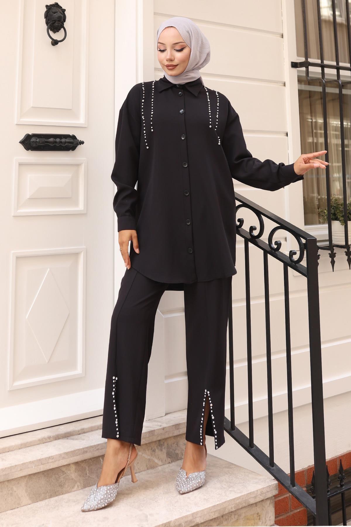 İnci Detaylı Takım Siyah 19259 İnci Detaylı Takım Siyah 19259 48