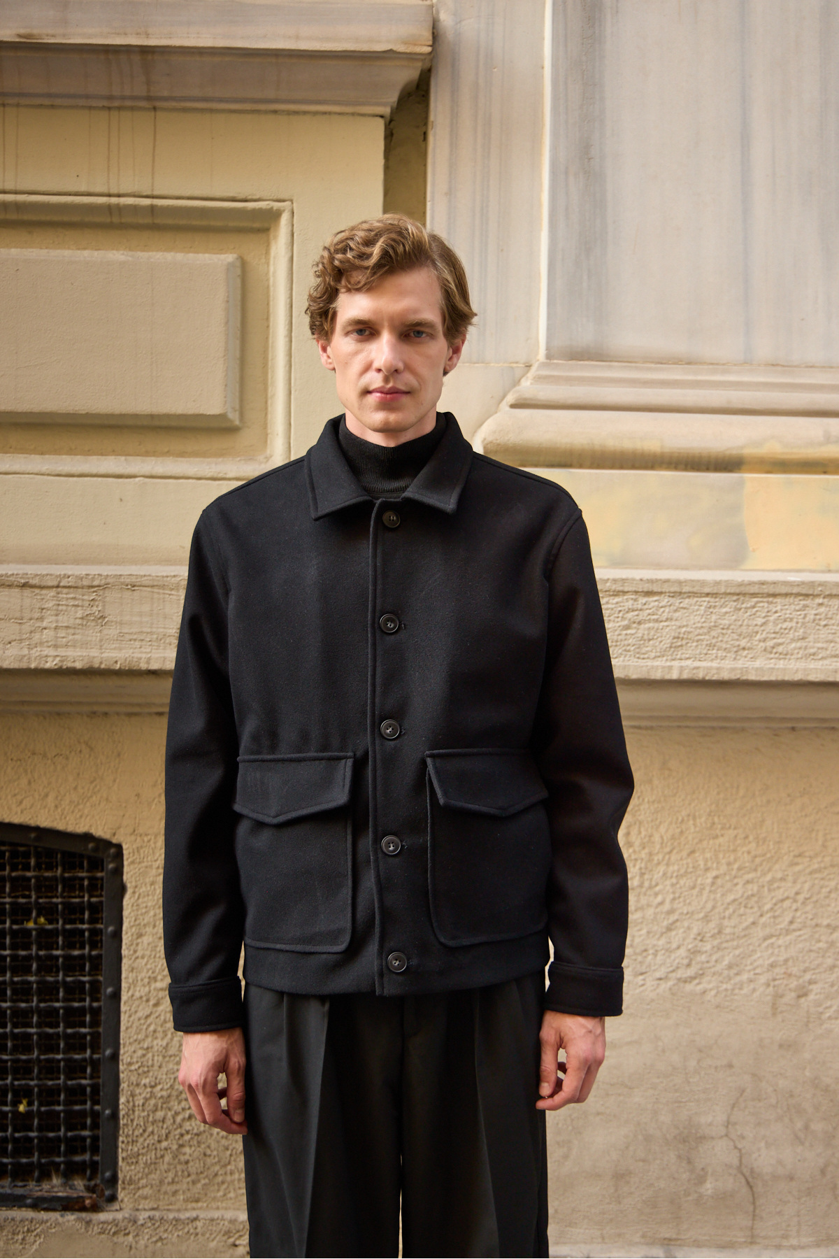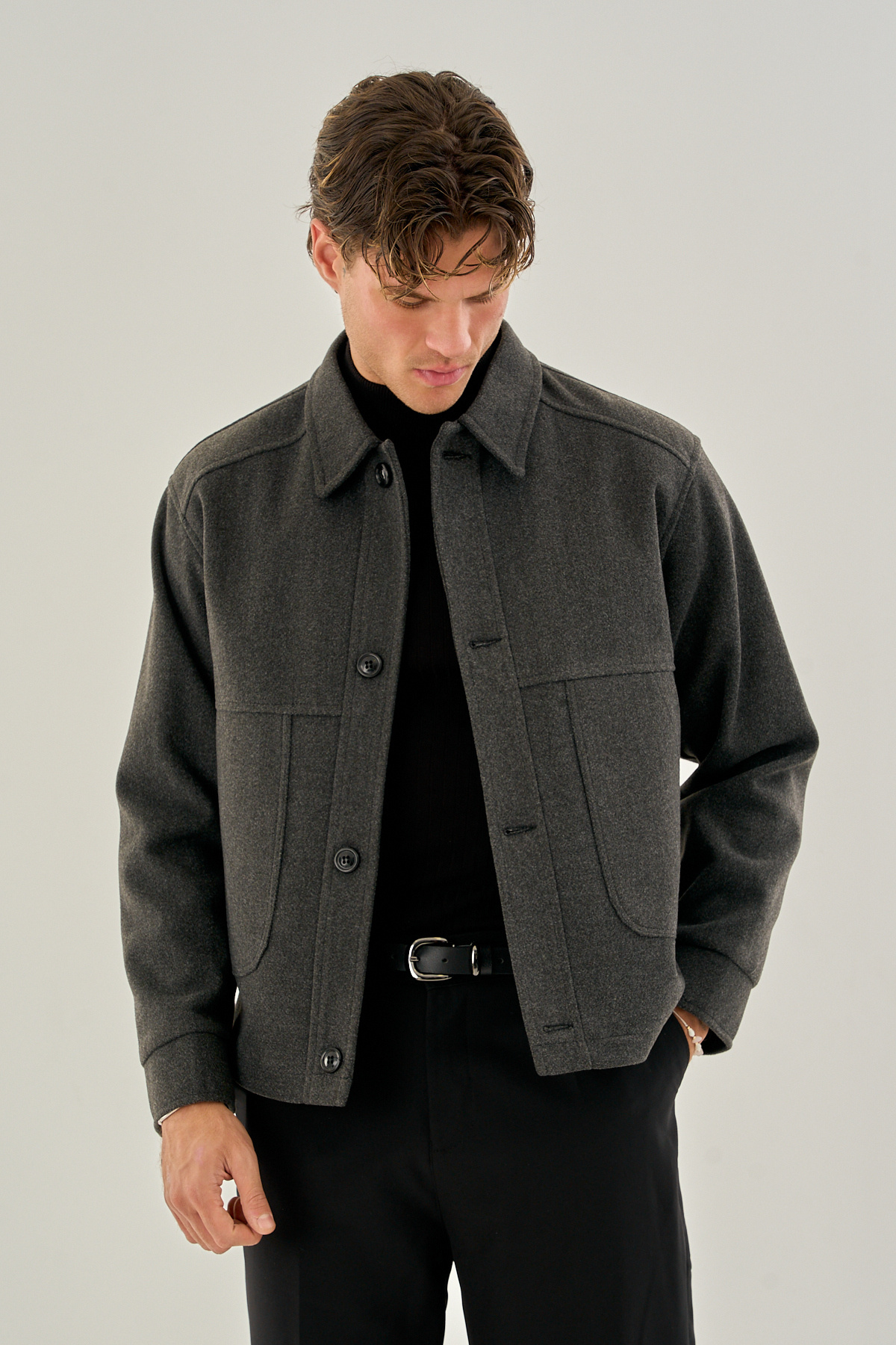 Erkek Gömlek Yaka Düğmeli Kaşe Mont Ceket Siyah Erkek Gömlek Yaka Düğmeli Kaşe Mont Ceket Siyah 4128DNGR XL