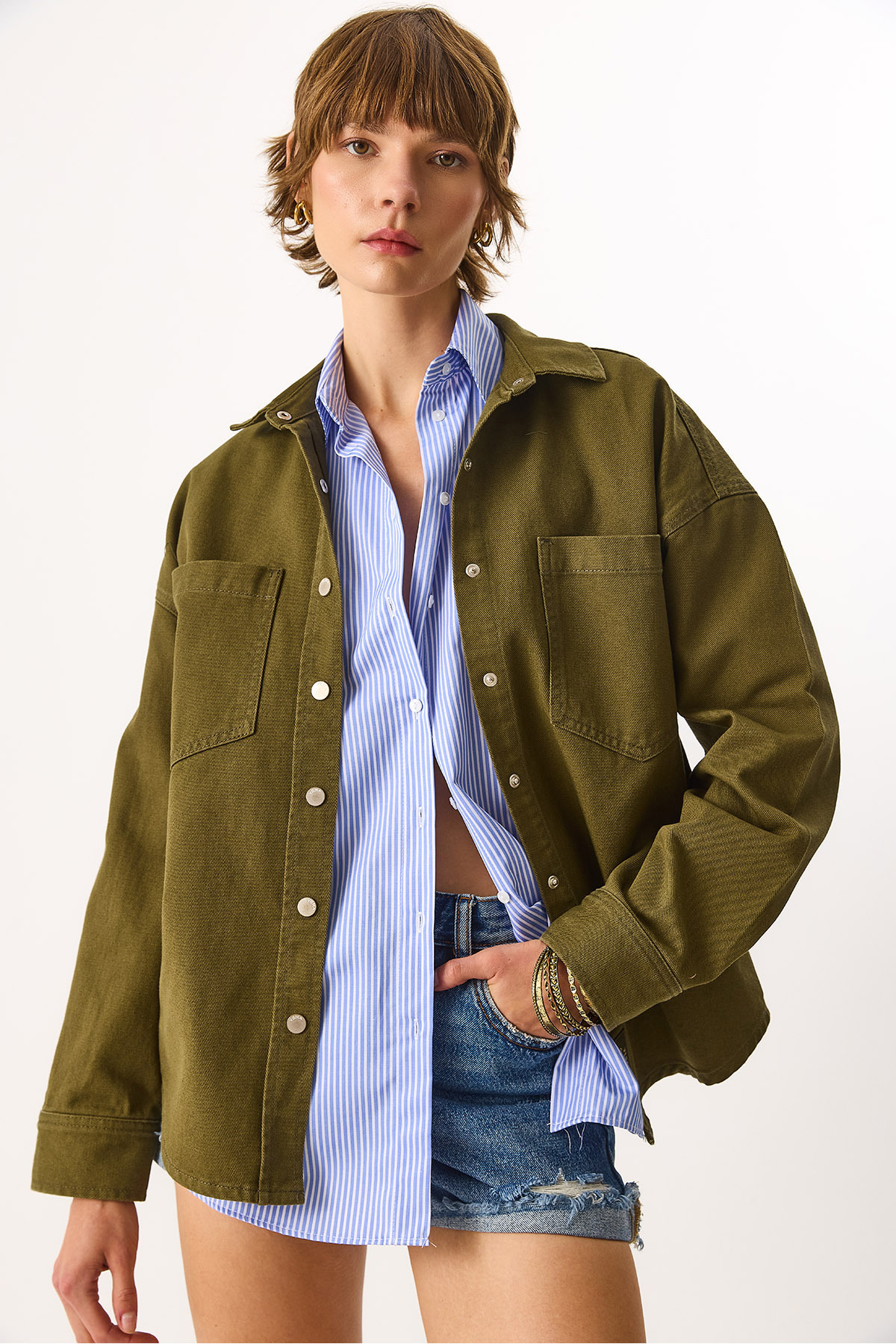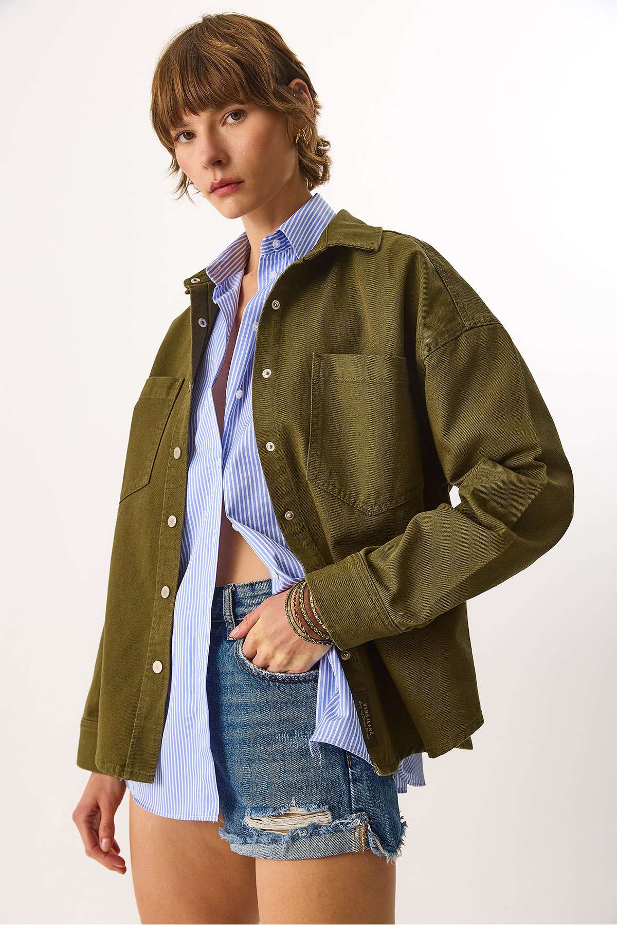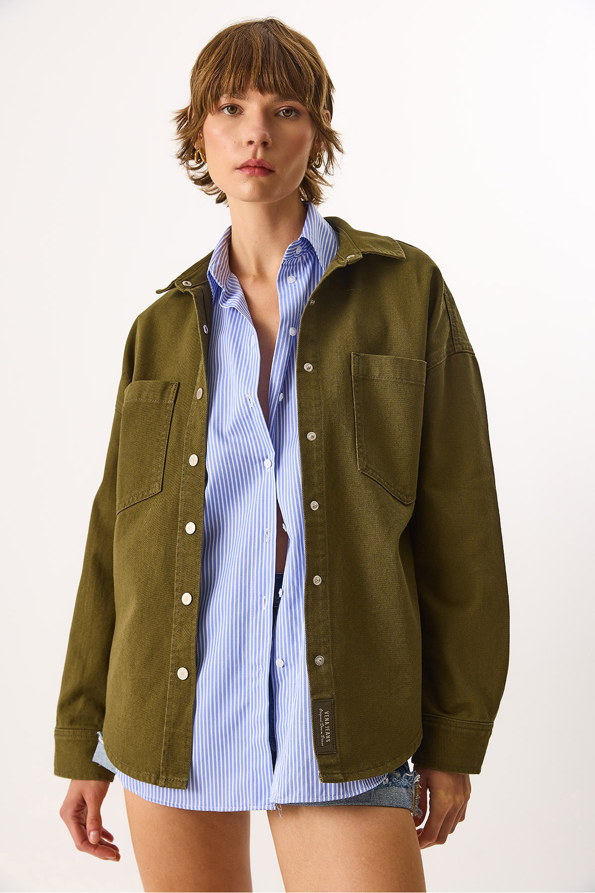 Sementa Renkli %100 Pamuk Jean Dış Gömlek - HAKİ Sementa Renkli %100 Pamuk Jean Dış Gömlek - HAKİ 5K265069R L