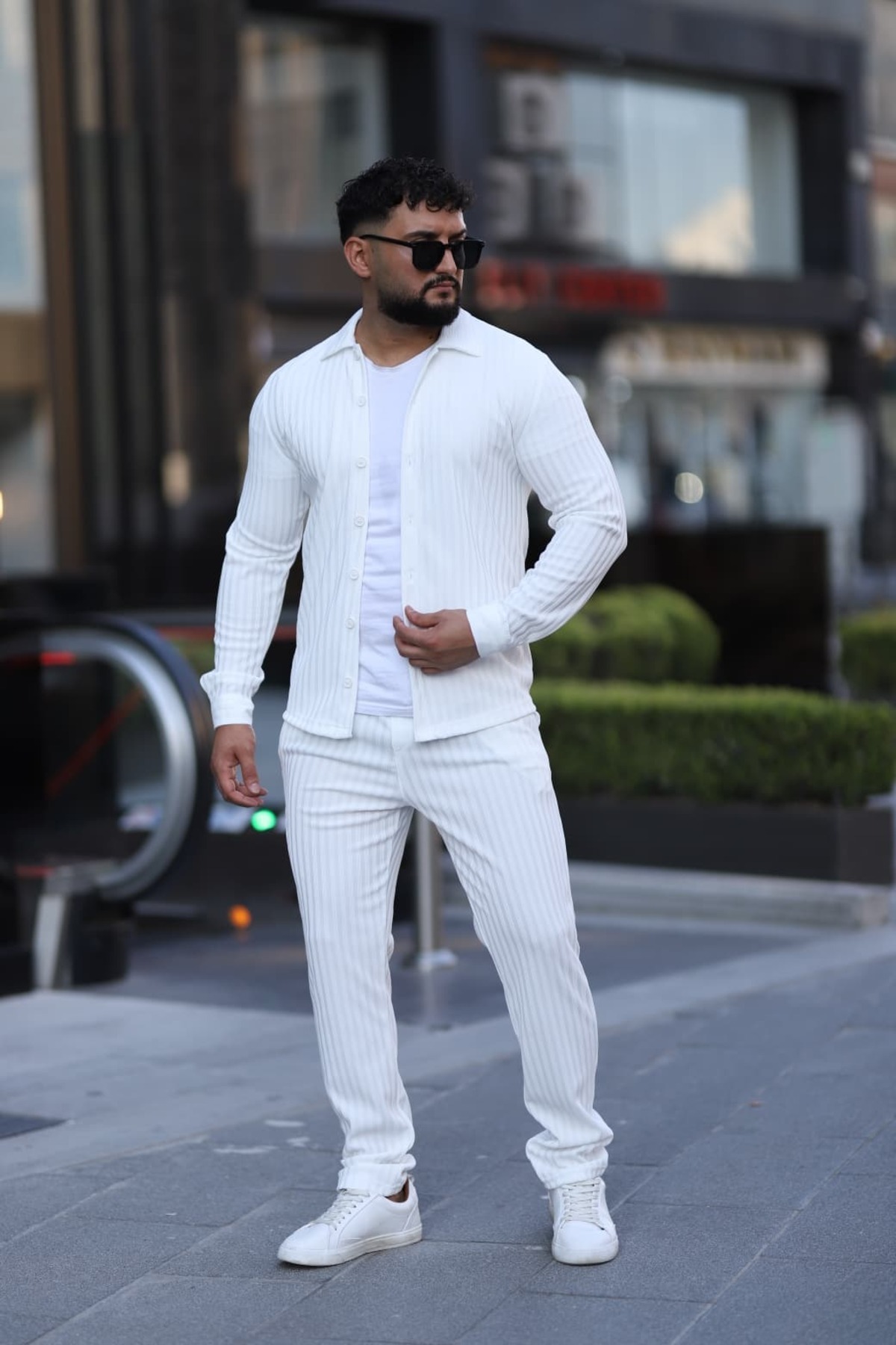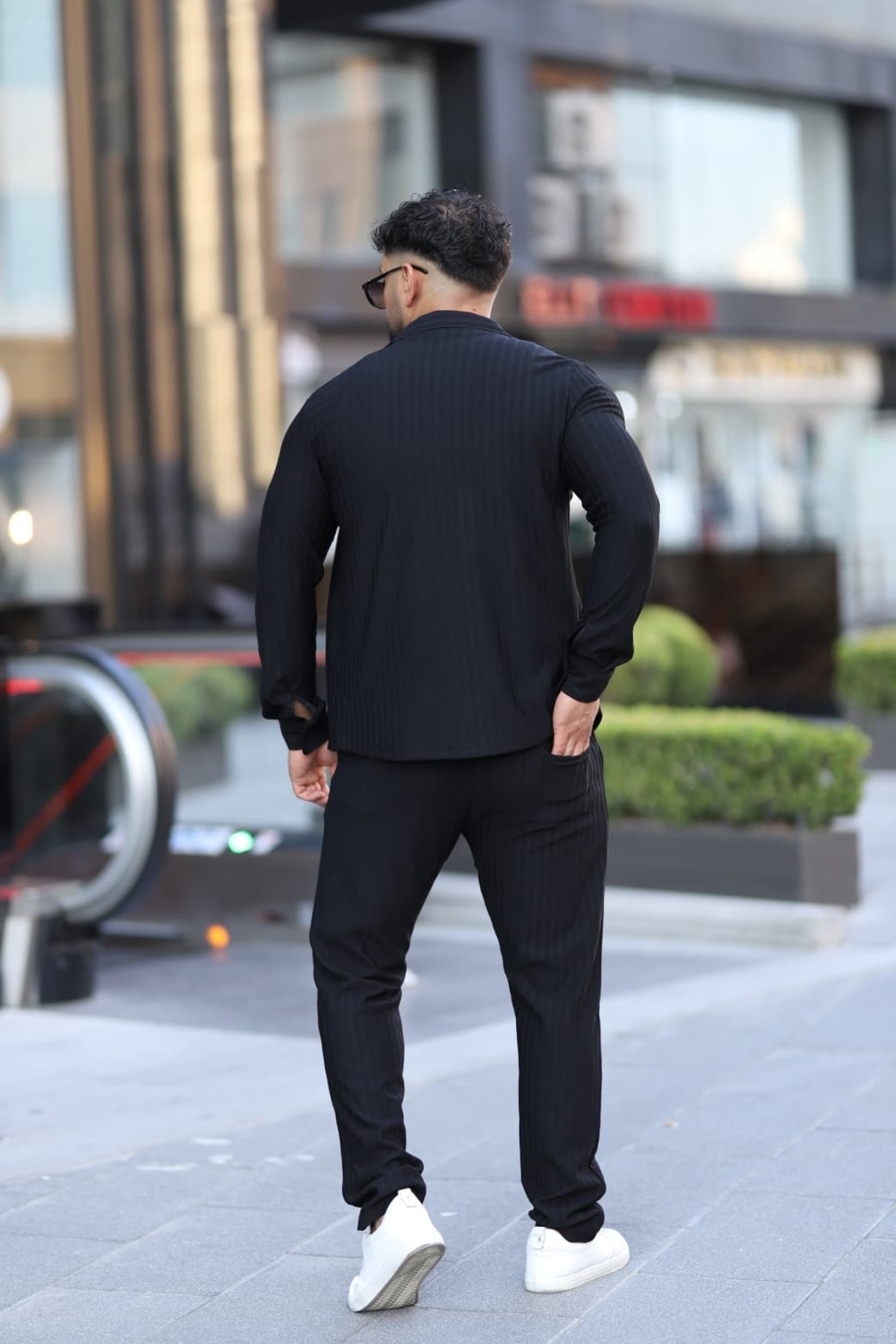 Çizgili Slim Fit 2li Takım (Gömlek & Pantolon) - Pamuklu Rahat Takım Elbise Çizgili Slim Fit 2li Takım (Gömlek & Pantolon) - Pamuklu Rahat Takım Elbise LKM1909 2XL