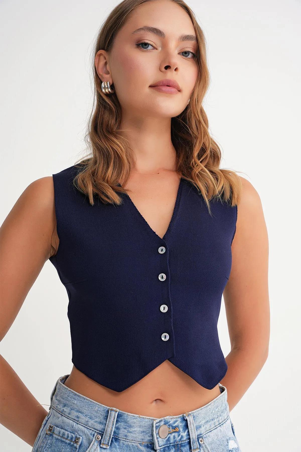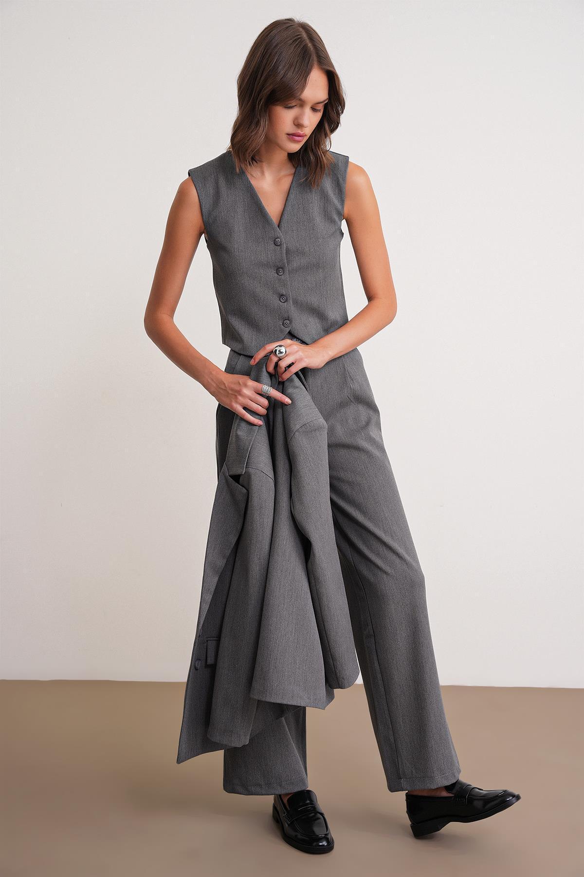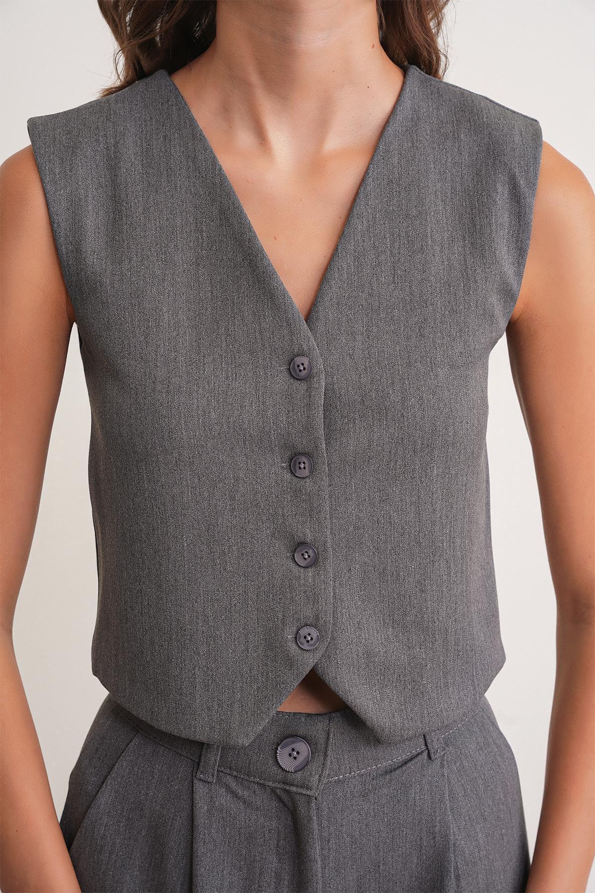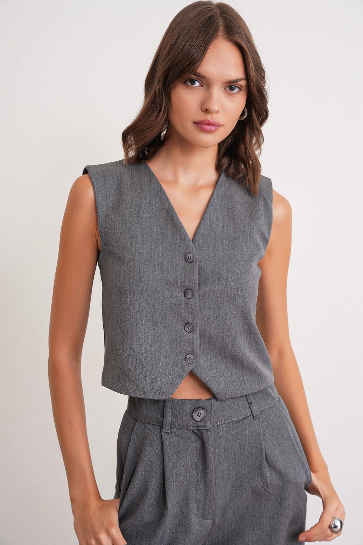 4743 Kadın V Yaka Düğmeli Vücuda Oturan Yelek Antrasit 4743 Kadın V Yaka Düğmeli Vücuda Oturan Yelek Antrasit Y25YLK4743 L