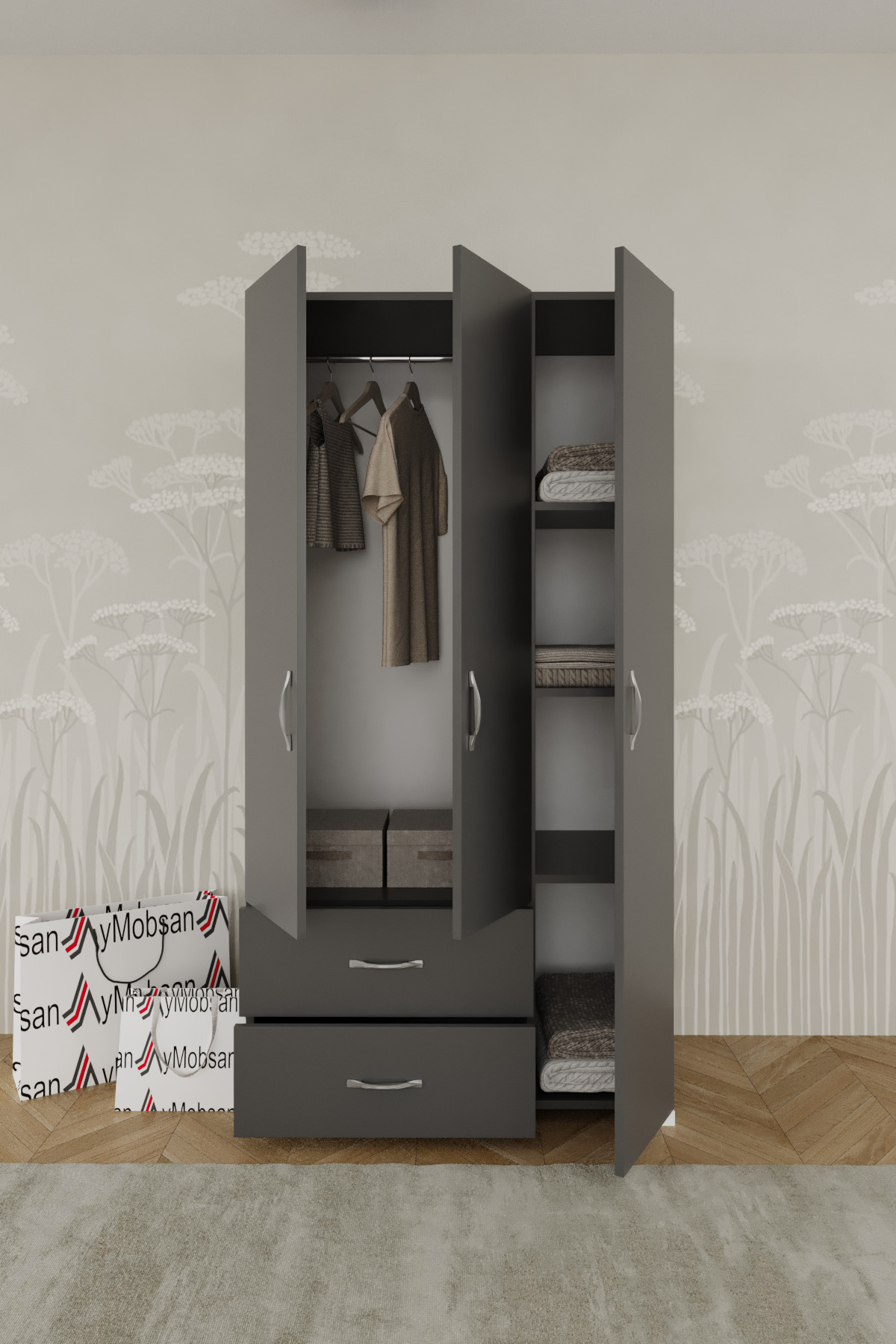 Mavera 3 Kapaklı 2 Çekmeceli Gardrop, Antrasit, 90 cm Mavera 3 Kapaklı 2 Çekmeceli Gardrop, Antrasit, 90 cm T-AYM-GRDRP-0004-01 173 cm
