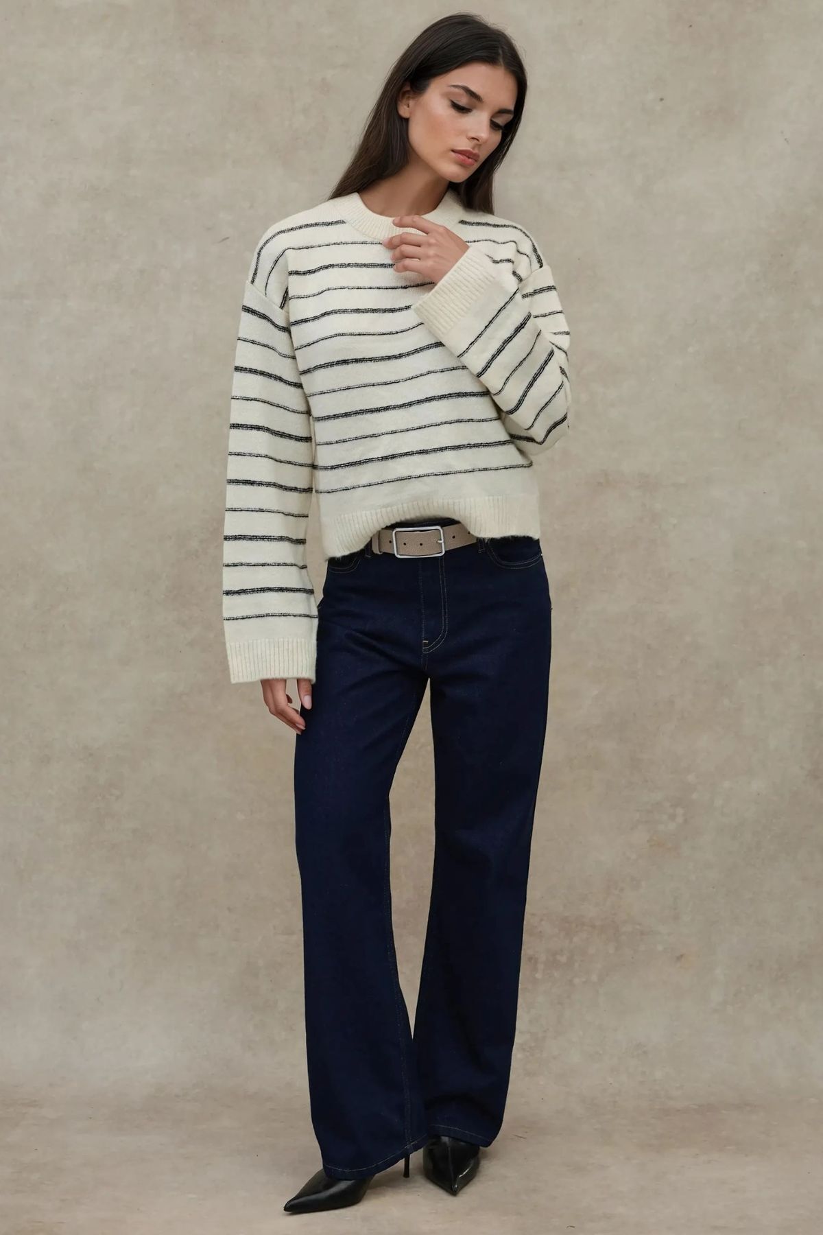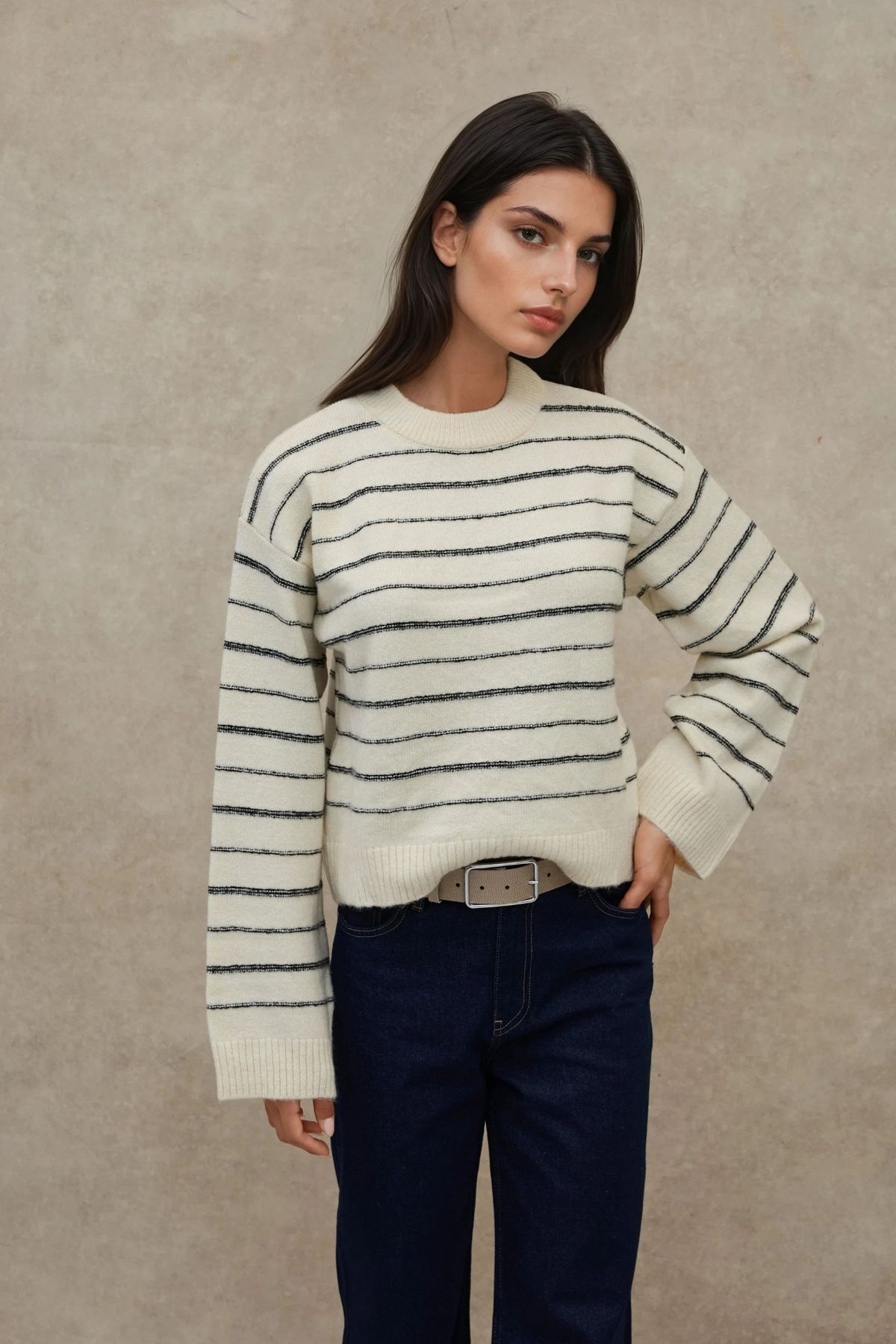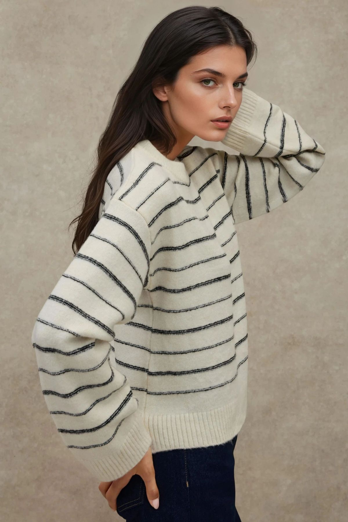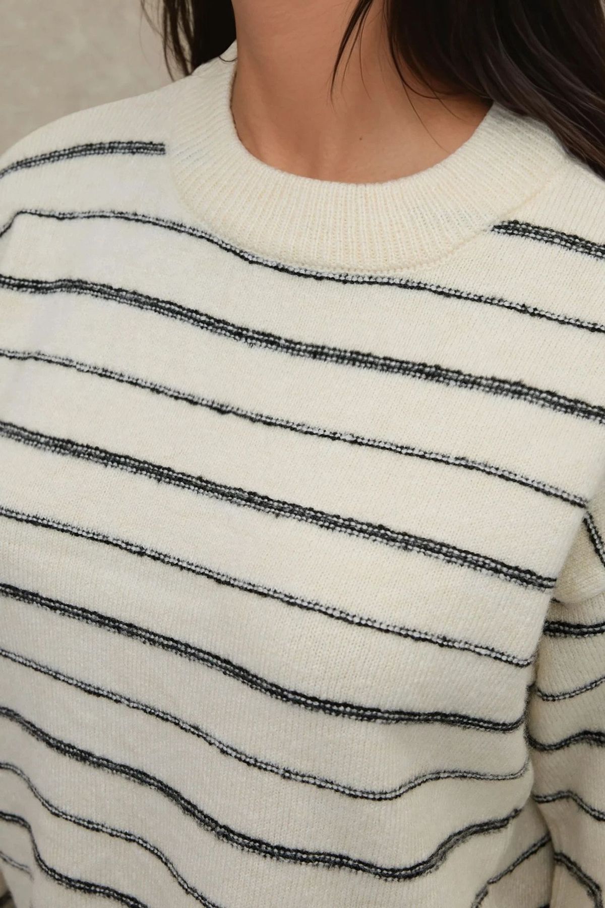 Çizgili Yuvarlak Yaka Yumuşak Triko Kazak Çizgili Yuvarlak Yaka Yumuşak Triko Kazak MBAQ1LJC L