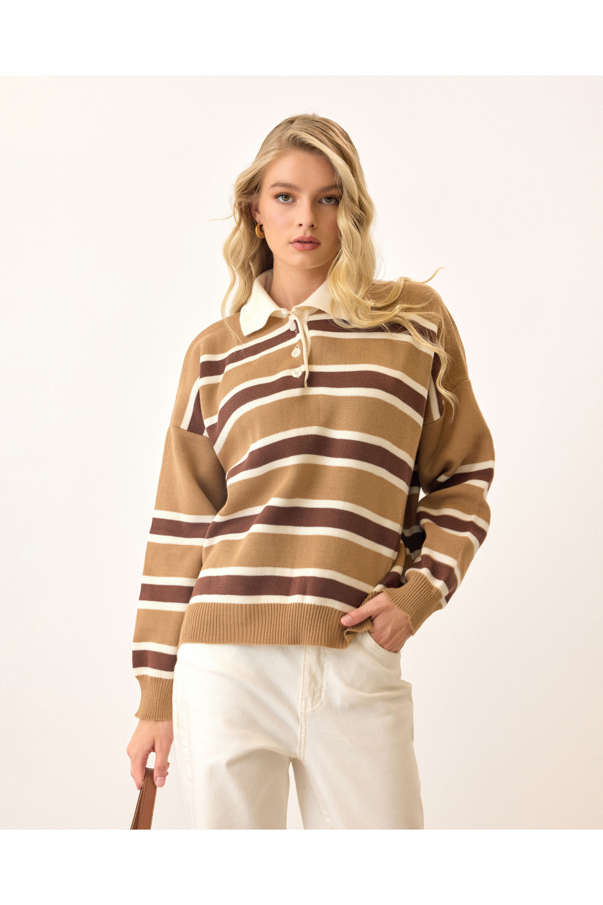 KADIN ÇİZGİLİ POLO YAKA TRİKO SWEATSHIRT (36-40 BEDENE UYUMLU) KADIN ÇİZGİLİ POLO YAKA TRİKO SWEATSHIRT (36-40 BEDENE UYUMLU) YAKA SWEATSHIRT 33 Standart