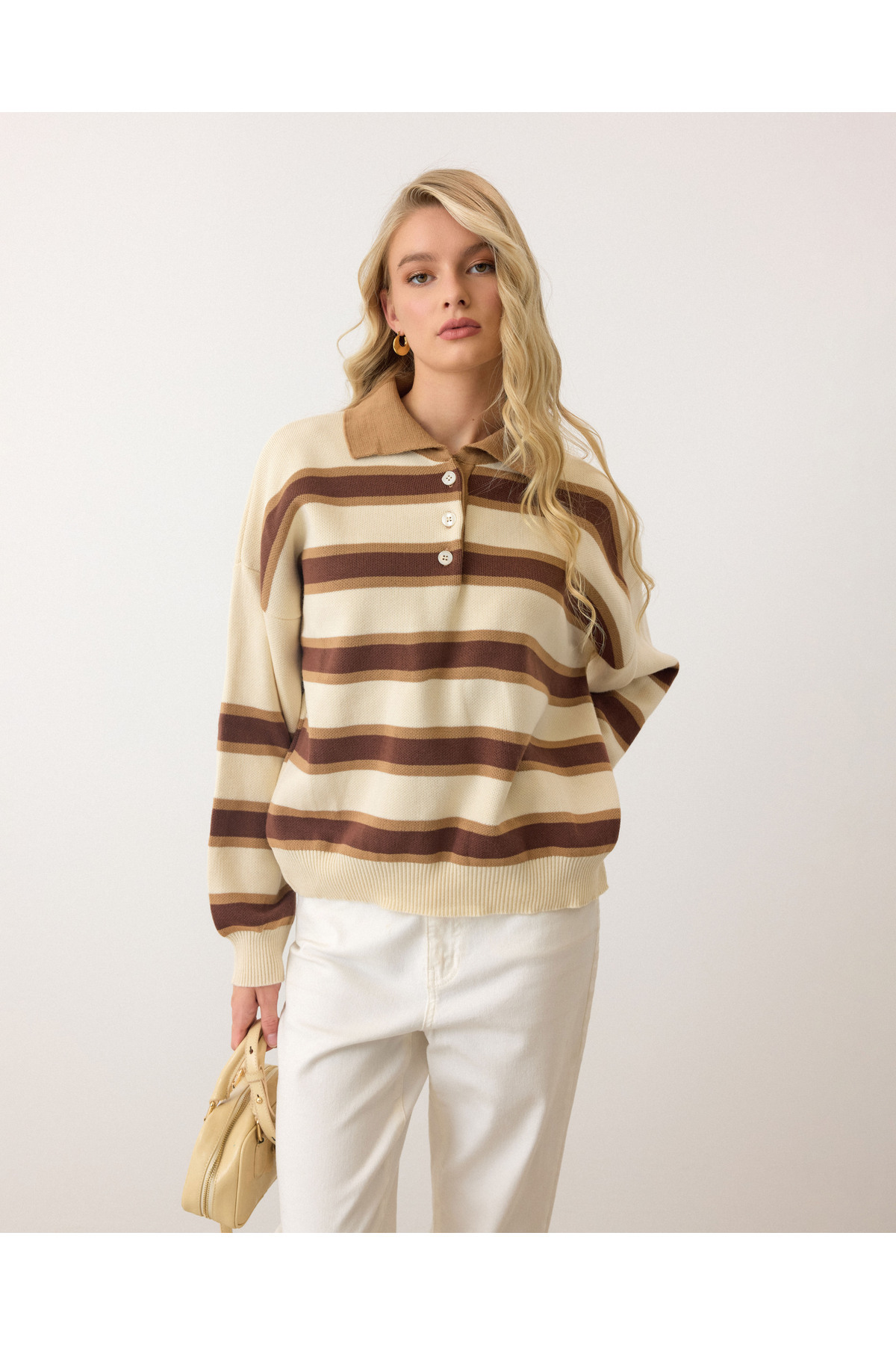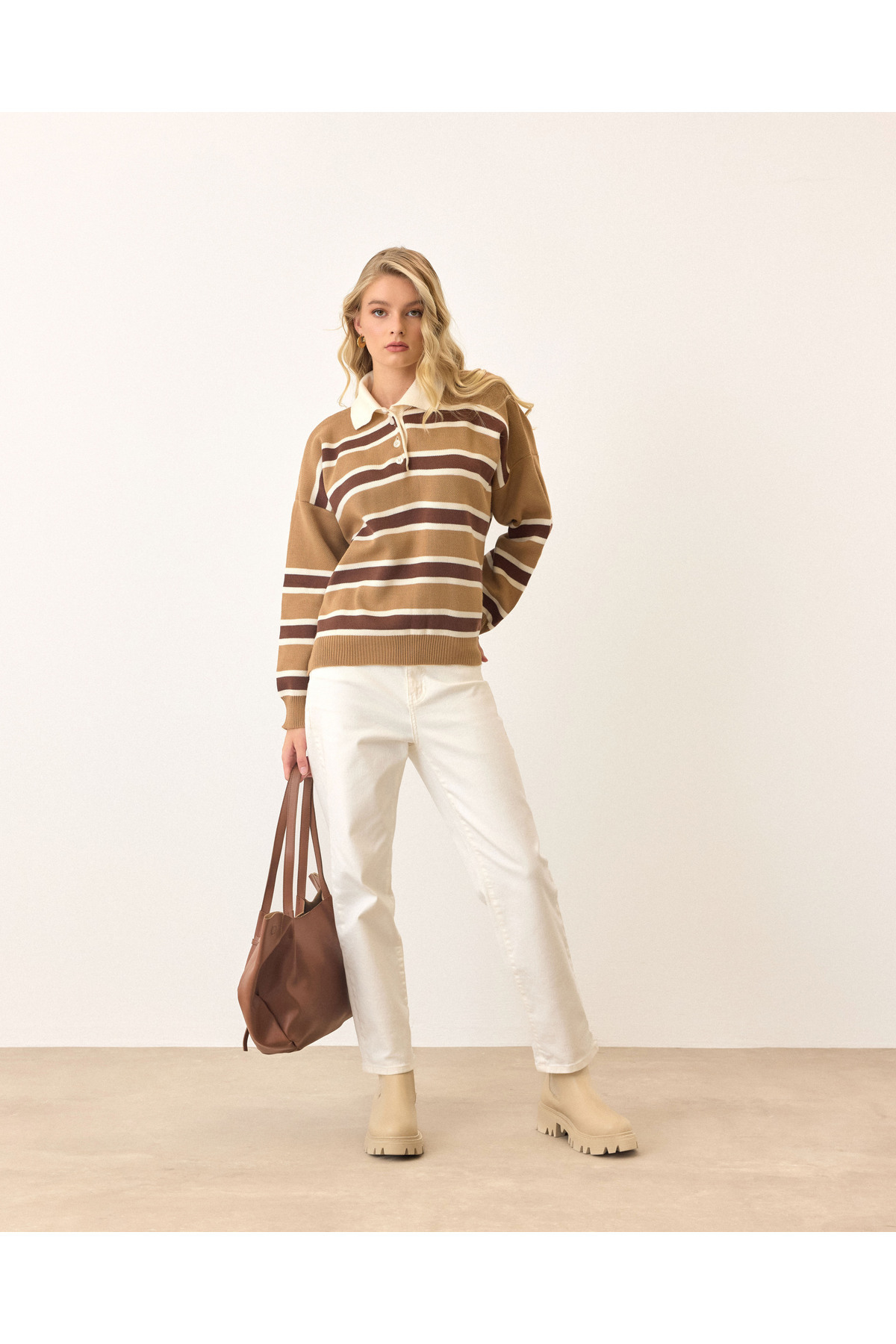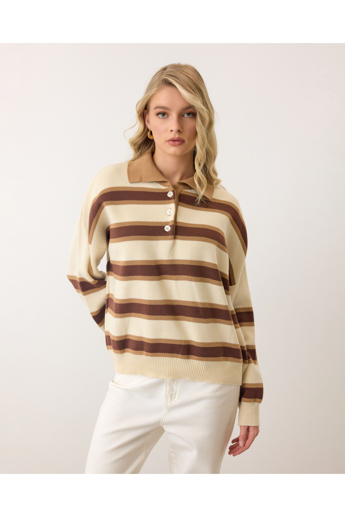 KADIN ÇİZGİLİ POLO YAKA TRİKO SWEATSHIRT (36-40 BEDENE UYUMLU) KADIN ÇİZGİLİ POLO YAKA TRİKO SWEATSHIRT (36-40 BEDENE UYUMLU) YAKA SWEATSHIRT 33 Standart